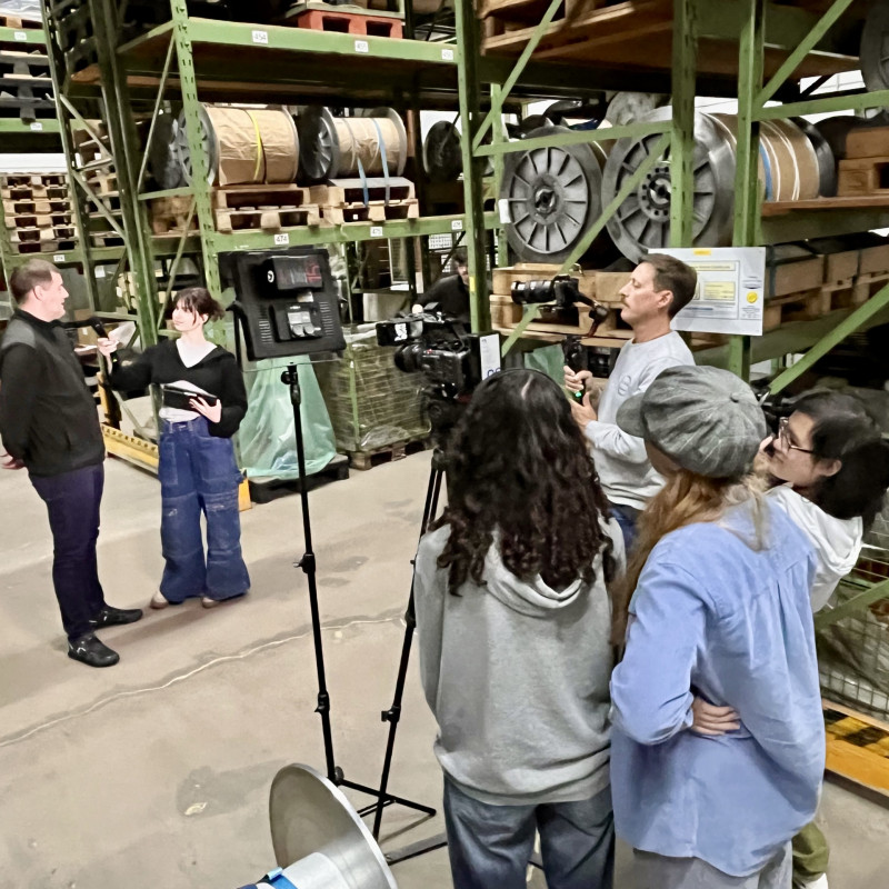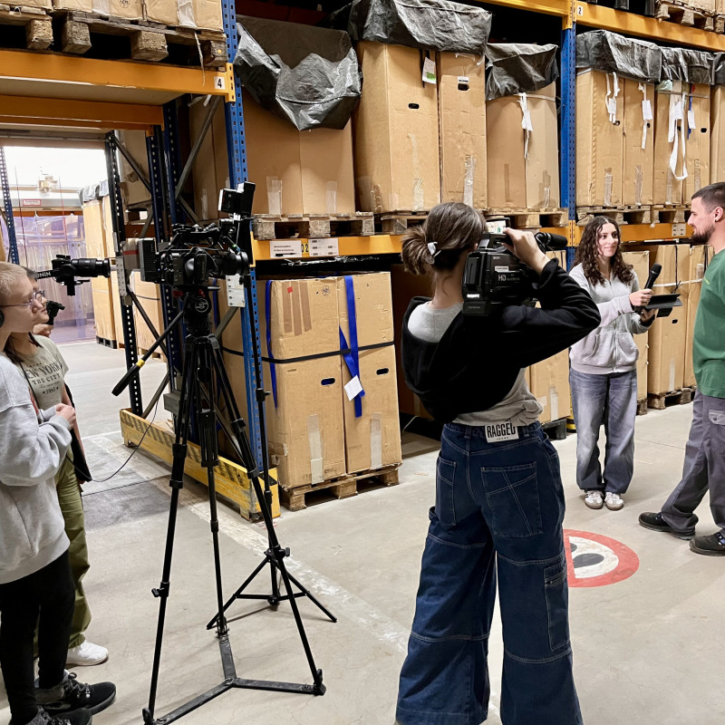 Von wegen leichtes Gepäck – ausgestattet mit Kameras, Lichtkoffern, Mikrofonen und jeder Menge Interviewfragen wurde das traditionsreiche Unternehmen Güth & Wolf zum spannenden Drehort für 10 Schülerinnen und Schüler der Janusz Korczak-Gesamtschule. Die Mission der vorweihnachtlichen Reise: Gemeinsam bildeten die Neunt- und Zehntklässler ein Produktionsteam im Rahmen des Workshops „Berufe-Klappe“, um ausgewählte Ausbildungsberufe der Gütersloher Band- und Gurtweberei filmisch darzustellen.
