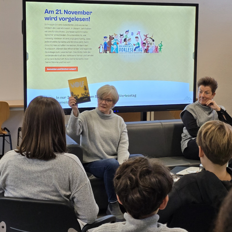 - Das digitale Vorlesefest wird in der Schulmediothek auf dem Legamaster während des Schultages übertragen.