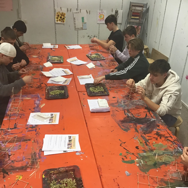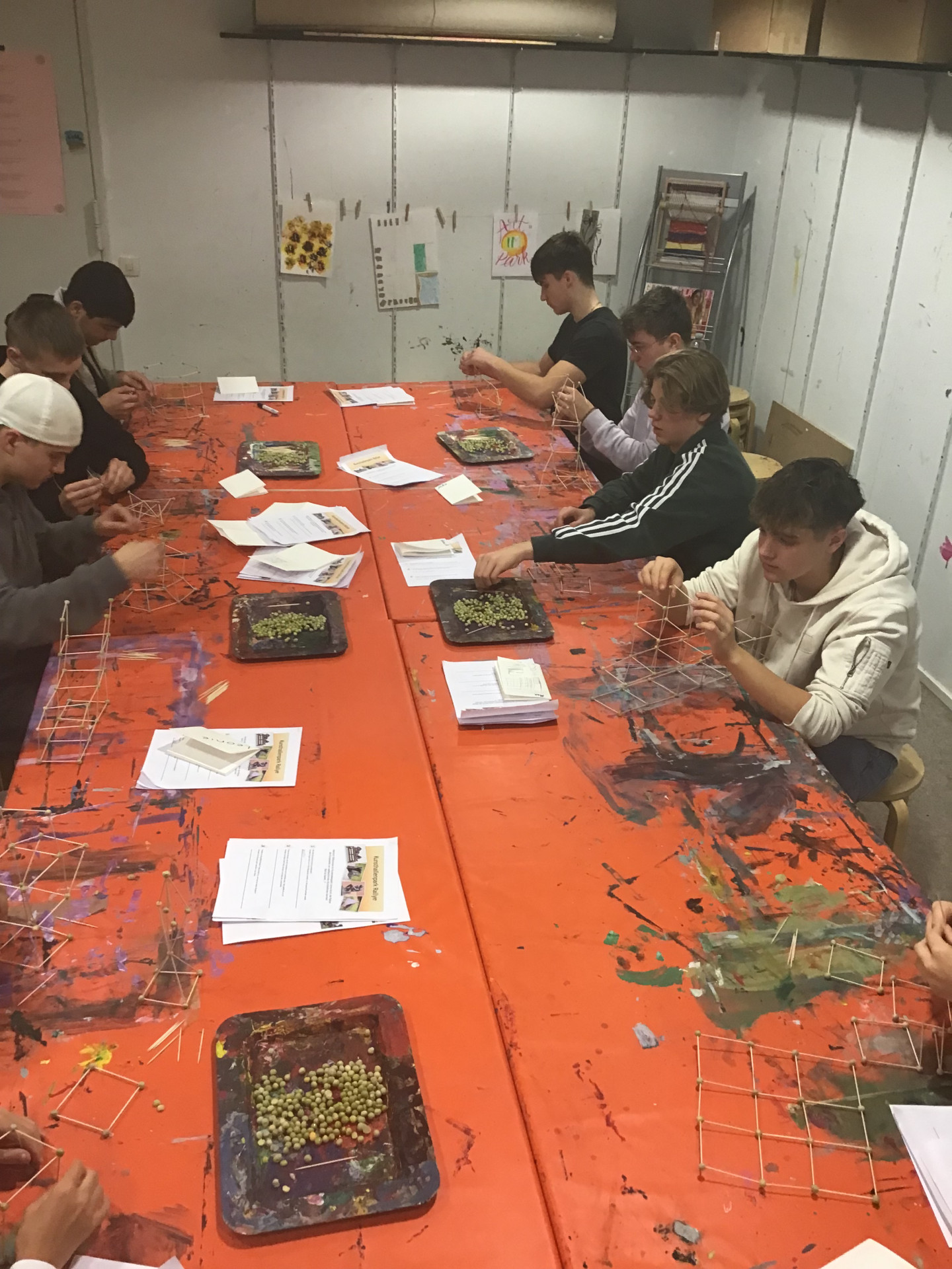 Die Klasse 10c verbrachte einen Tag in der Kunsthalle Bielefeld, wo wir an dem Workshop "Eine Skulpturentour im Kunsthallenpark" im Rahmen des Projektes KulturScouts OWL teilgenommen haben. Nachdem die Klasse in zwei Gruppen eingeteilt wurde, haben wir uns zuerst Skulpturen im Skulpturenpark rund um die Kunsthalle angesehen. Viele Skulpturen regten zum Nachdenken an und führten zu intensiven Diskussionen. Anschließend wurde uns die aktuelle Ausstellung in der Kunsthalle gezeigt, die uns Inspiration für den anschließenden Workshop gab, bei dem eigene Skulpturen gestaltet werden sollten. Wir konnten unserer Kreativität mit verschiedenen Materialien freien Lauf lassen. So entstanden individuelle Kunstwerke aus Papier, Pappe, Erbsen und Zahnstocher.