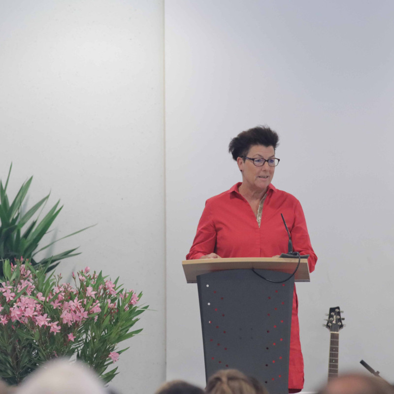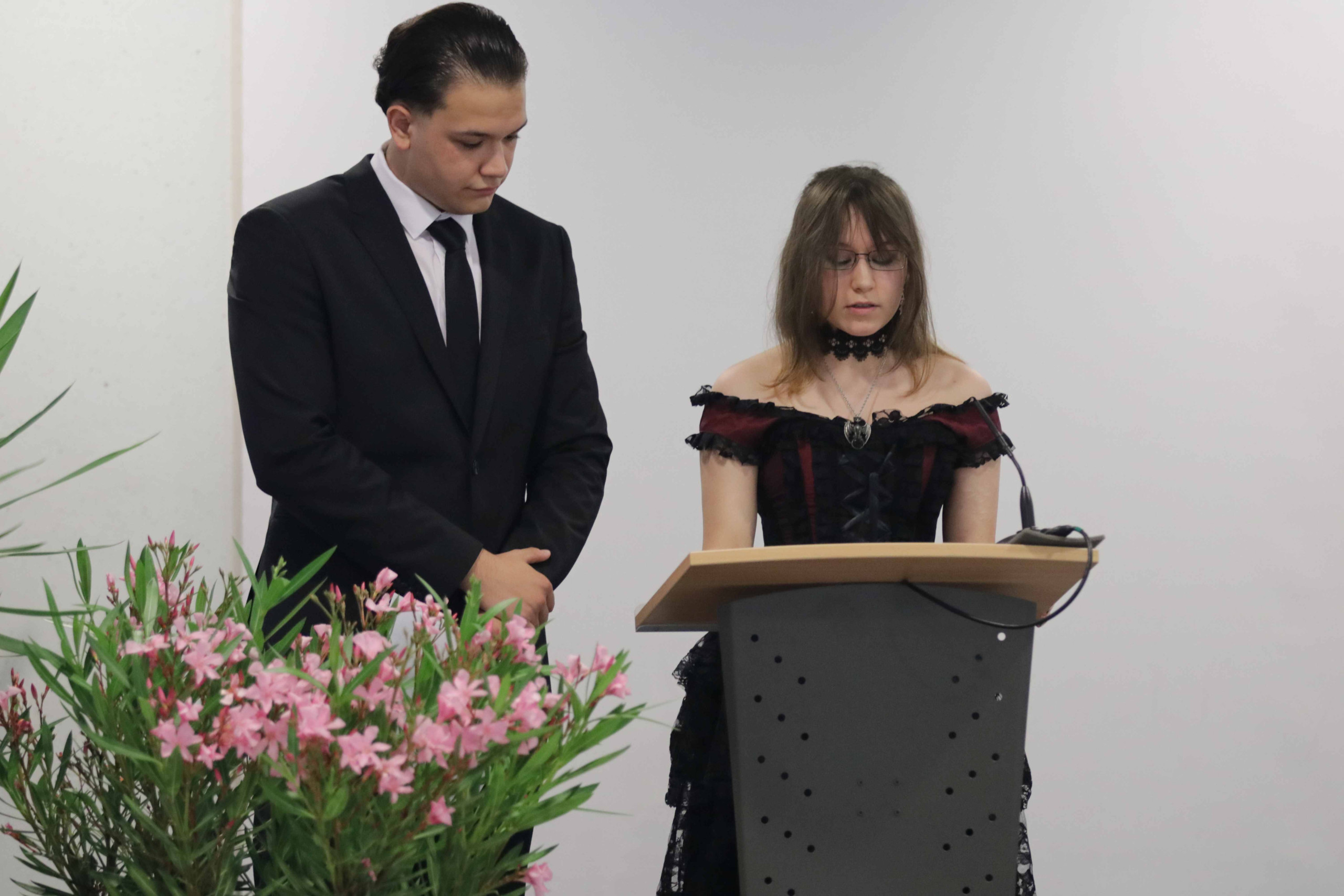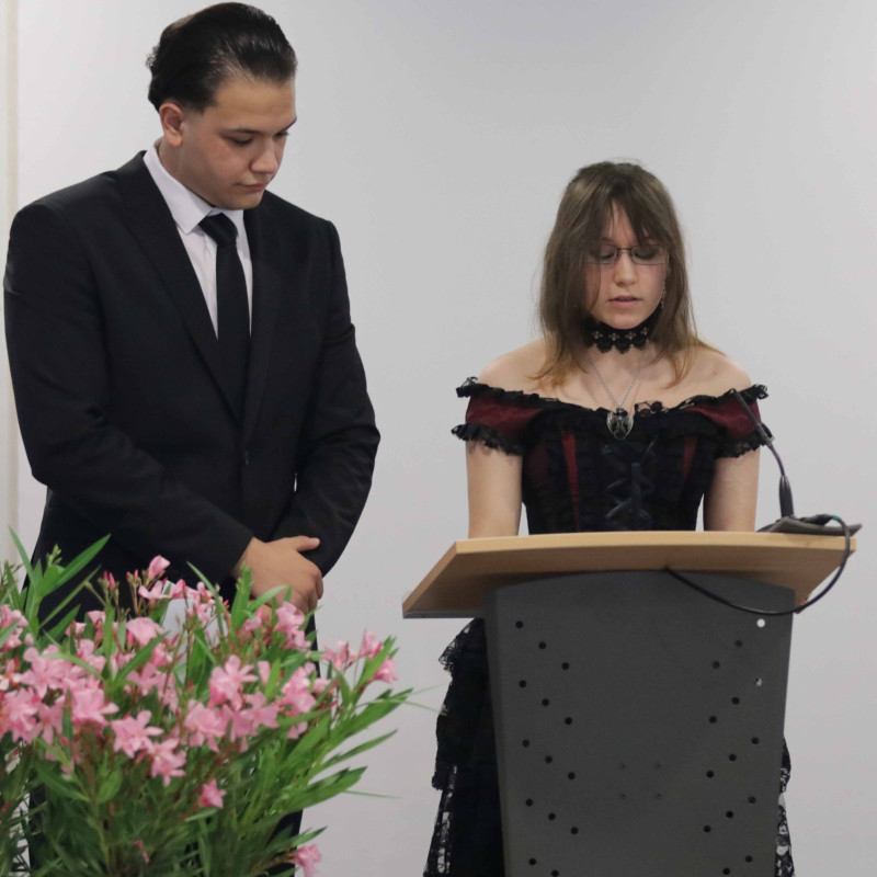 Schulleiterin Frau Elbracht richtete den Blick auf die gesellschaftlichen Herausforderungen unserer Zeit und betonte in ihrer Rede die Bedeutung demokratischer Werte. Sie rief die Schülerinnen und Schüler dazu auf, Verantwortung zu übernehmen und durch Menschlichkeit, Toleranz und Respekt aktiv zum Gelingen unseres Zusammenlebens beizutragen.
