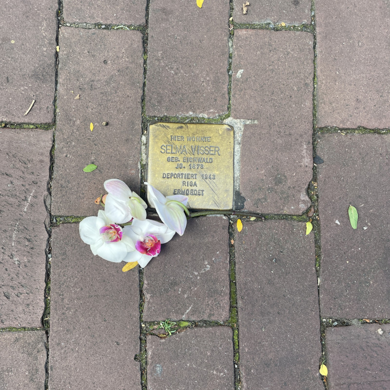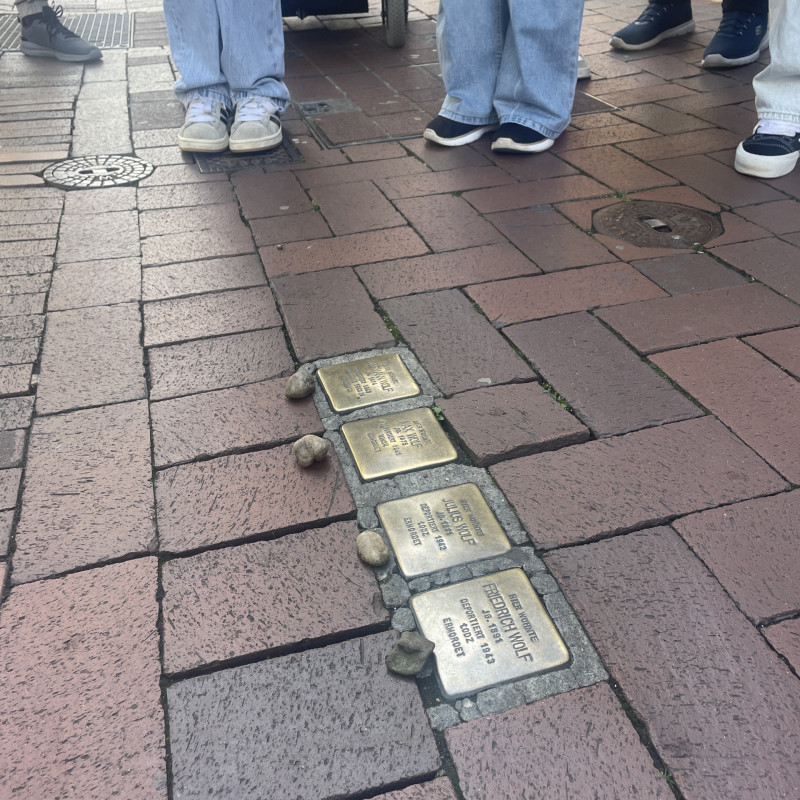 Die Schüler/innen haben außerdem die Stolpersteine gereinigt und Blumen oder Steine als Zeichen des Gedenkens niedergelegt.