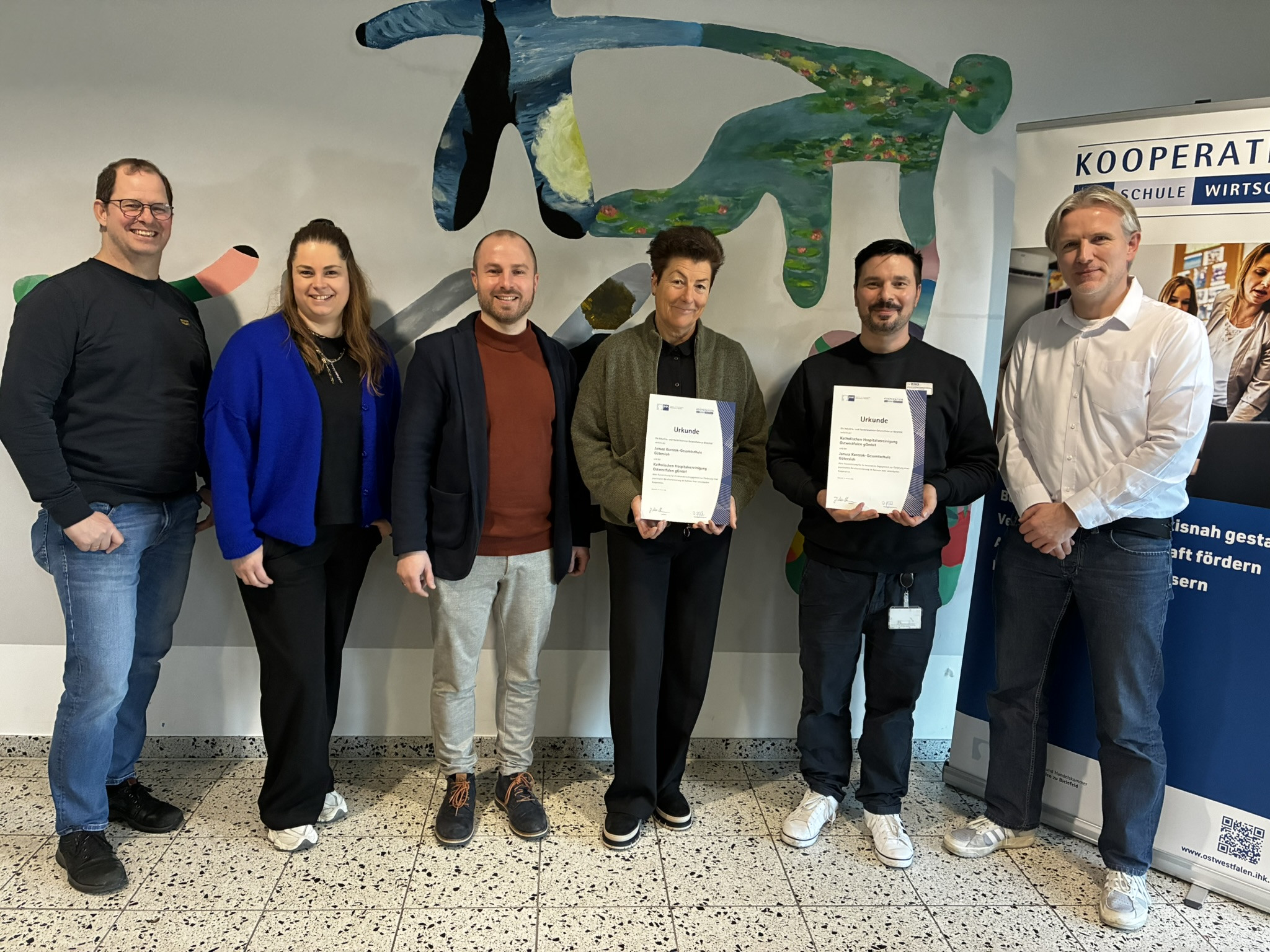Unsere Schule freut sich über eine zukünftige Zusammenarbeit mit der Katholischen Hospitalvereinigung, die das Angebot im Bereich der Berufsorientierung deutlich erweitert. Die Kooperation ist durch und mit der Industrie- und Handelskammer (IHK) zustande gekommen, die beide Partner zusammengeführt und den Austausch begleitet hat.