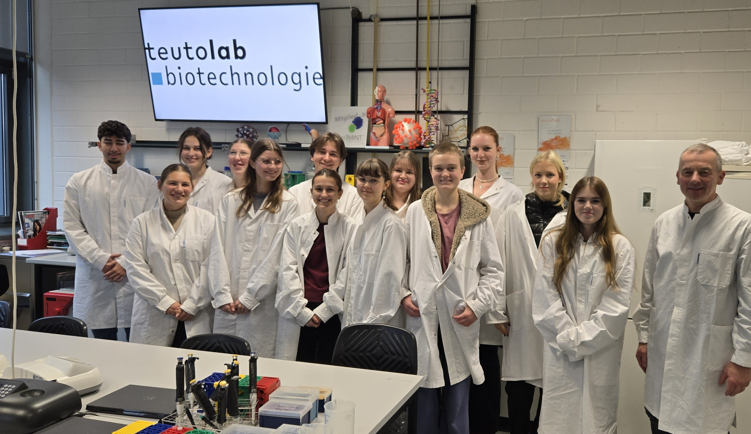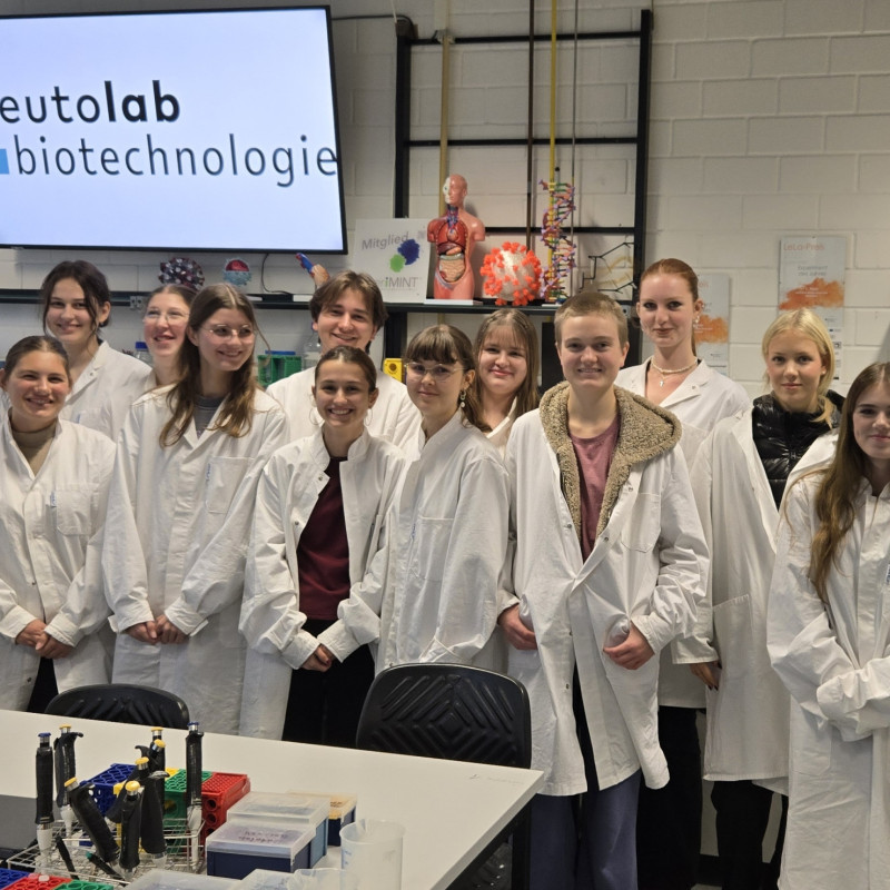 Eine lehrreiche Exkursion unternahmen der Biologie-Leistungskurs der Q2 sowie einige Schüler:innen des Biologie-Grundkurses zum CeBiTec (Centrum für Biotechnologie) an der Universität Bielefeld. Bereits um 9 Uhr morgens begann der Labortag, der thematisch eng an die aktuelle Unterrichtsreihe Gentechnik angebunden war und den Schüler:innen die Möglichkeit bot, theoretisch erlernte Inhalte in einem echten Forschungslabor praktisch umzusetzen.