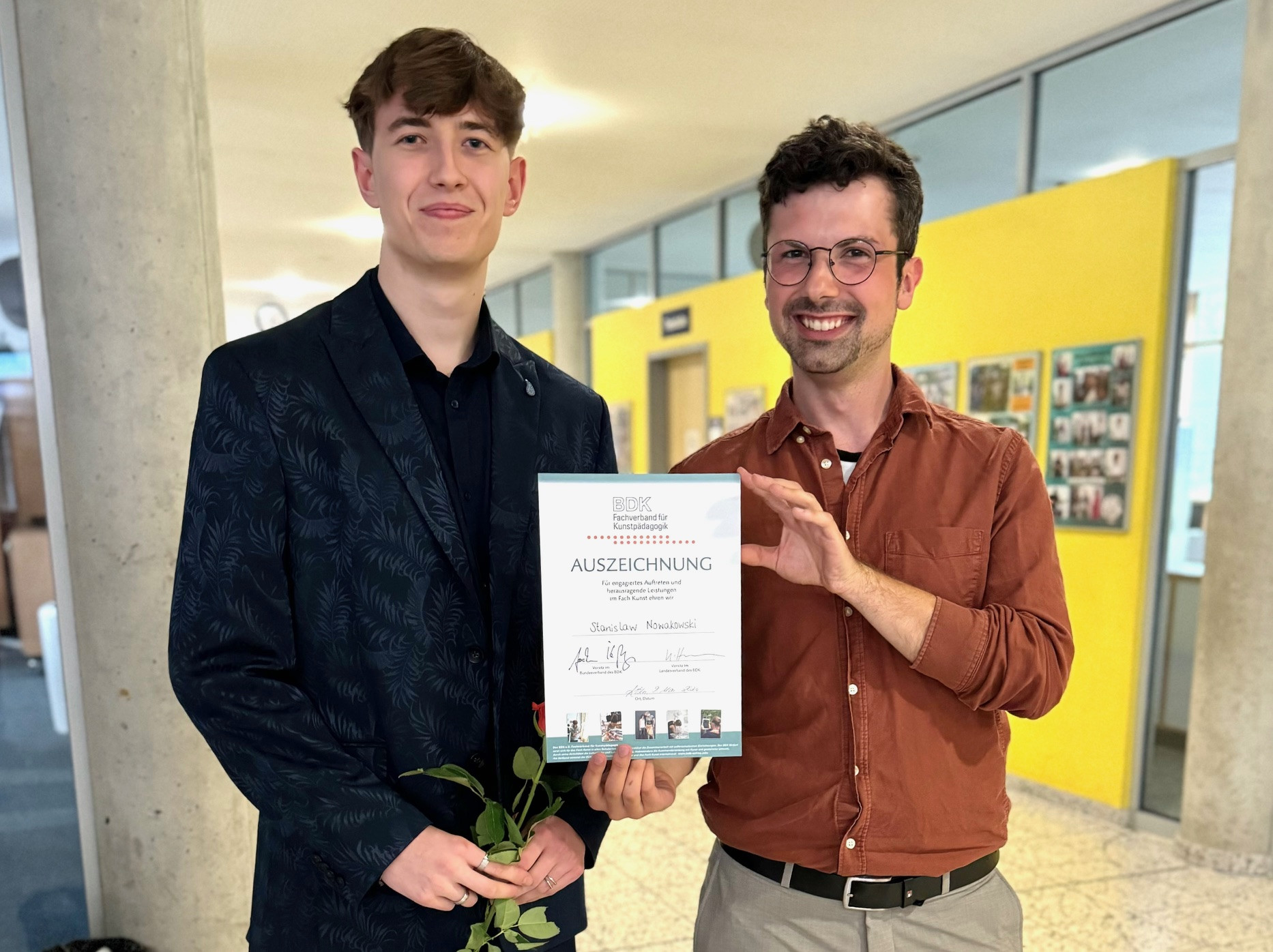 Unser Abiturient Stanislaw Nowakowski wurde in der vergangenen Woche vom Bundesverband der Kunstpädagogik (BDK) ausgezeichnet. Mit der Urkunde erhält Stanislaw eine besondere Würdigung für seinen Film „Die Kugel“, den er im Rahmen eines Abschlussprojektes im Kunstunterrichts entwickelte.