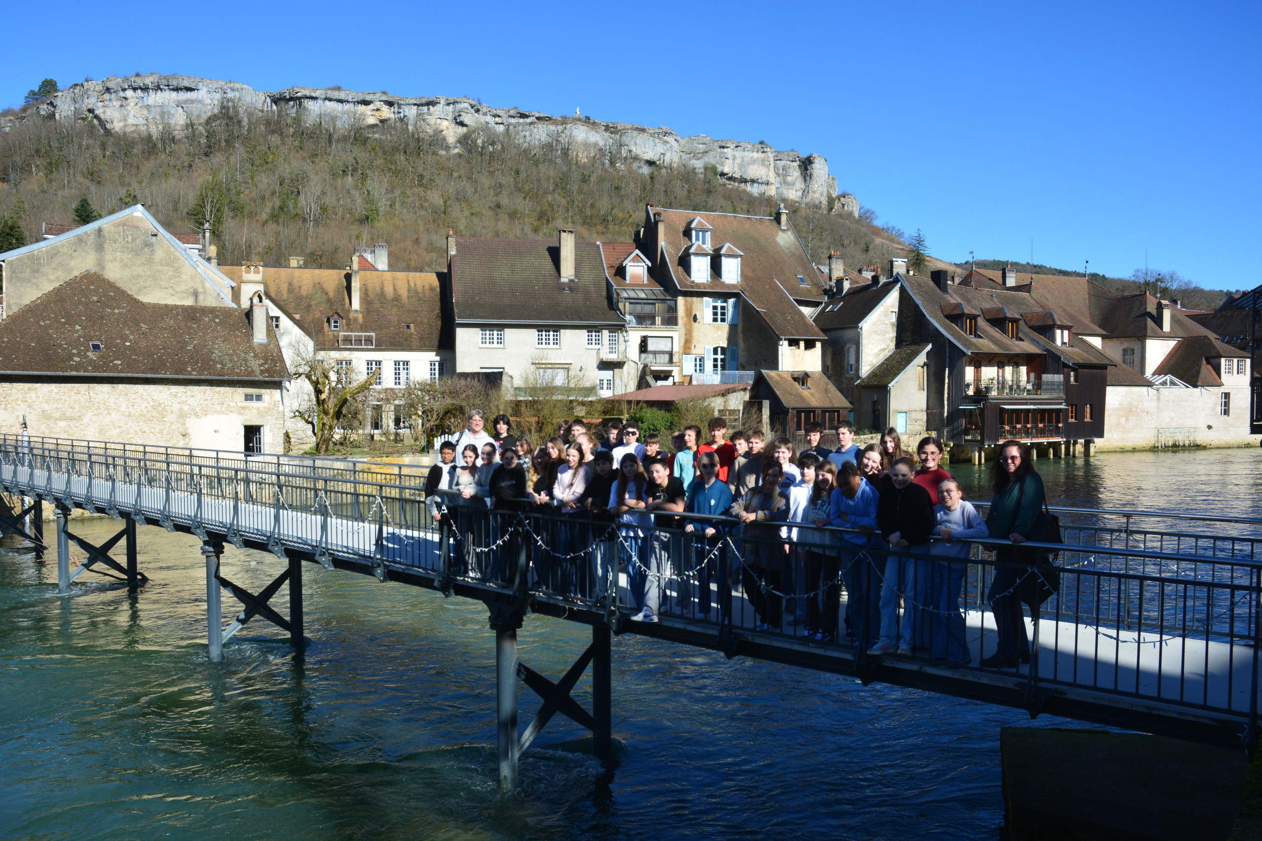 Am Dienstag hatten wir unseren ersten Schultag in der französischen Schule. Die Deutschlehrerin Madame Tissot hat uns durch die Schule geführt, hat uns alle Räume gezeigt und uns die für uns unbekannten Schulfächer vorgestellt. Nach der Führung durften wir einen Blick auf „unseren“ Stundenplan werfen. Nach der 20minütigen Frühstückspause hatten wir unseren ersten französischen Unterricht. Öfters kommt es vor, dass wir eine Doppelstunde hatten. Daraufhin hatten wir mit den Franzosen einen Spaziergang zum Relief „Begräbnis von Ornans“. Anschließend sind wir zurück zur Schule gegangen und hatten unsere 1,5stündige Mittagspause: In der Mensa gab es eine Vorspeise, ein Hauptgericht, Käse und ein Dessert. Nach der Pause hatten wir 2 Stunden Unterricht, und im Anschluss hatten wir eine AG Stunde. Wir waren in der Zumba-AG mit Madame Tissot. Schulschluss war um 16:35 Uhr. Dann hatten wir Freizeit mit unseren Austauschschülern.
