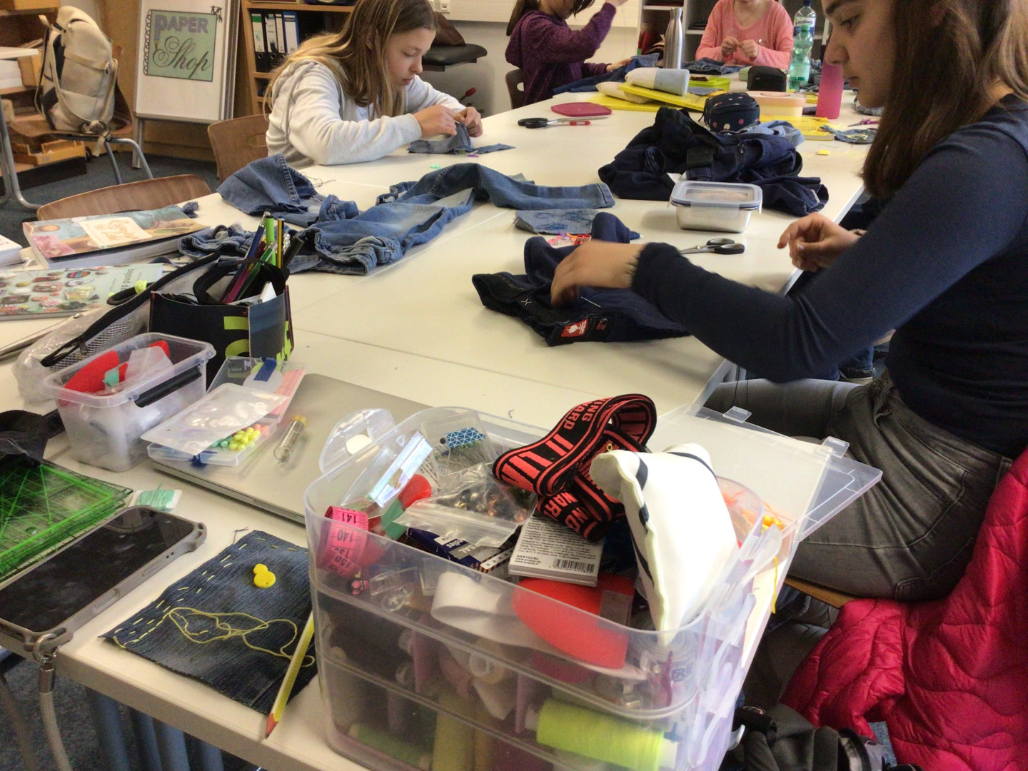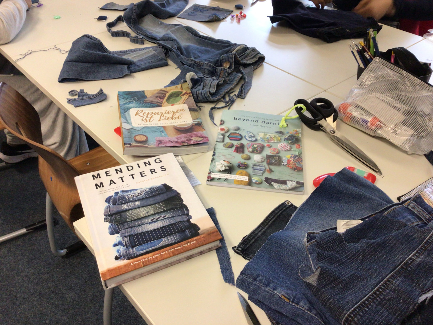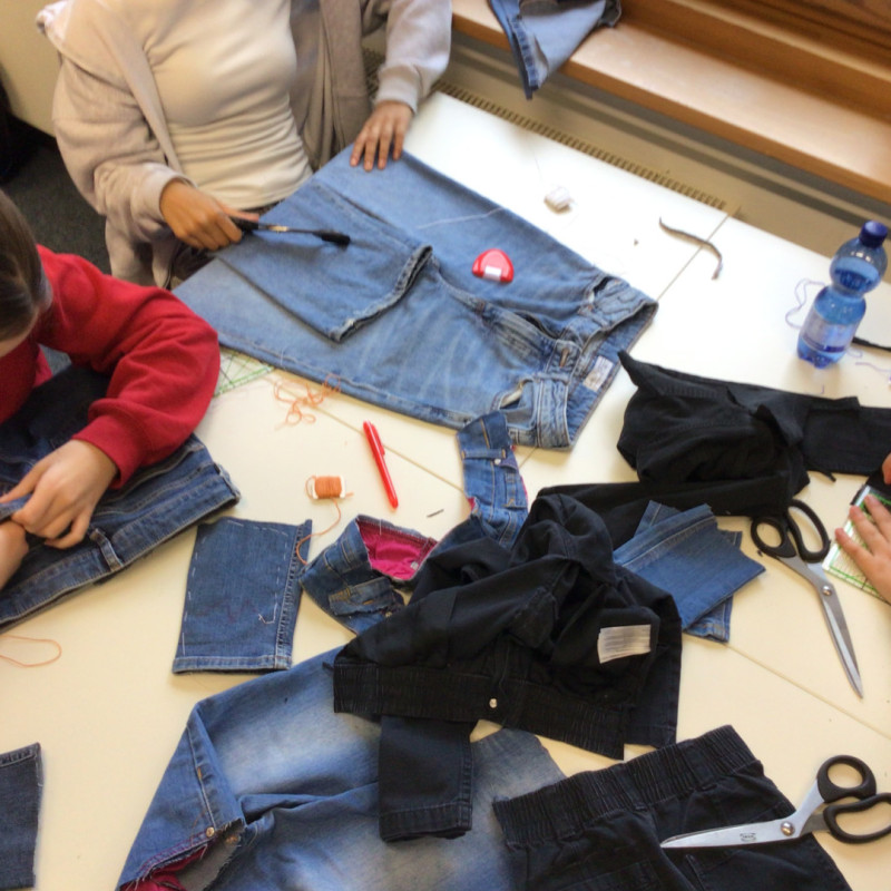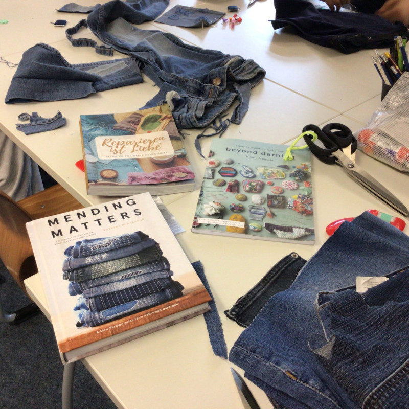 Im Rahmen der Kulturscouts OWL wurde am 16.4. ein kreativer Upcycling-Workshop an der JKG angeboten. Nachdem wir durch ein Video und einem kurzen Vortrag von der Workshopleiterin Laura Schlütz für die Umweltbelastungen durch die Herstellung von Kleidungsstücken sensibilisiert worden sind, wurde unter dem Motto „Waste isn`t wast until you waste it“ an unseren mitgebrachten und aussortierten Jeanshosen gearbeitet. Vorbild dafür war die japanische Boro-Technik und den daraus entstandenen traditionellen Kleidungsstücken (z.B. Flickenjacken). Dieser Tag, der uns die Wertschätzung von Kleidungsstücken vor Augen geführt hat, wird uns noch lange in Erinnerung bleiben.