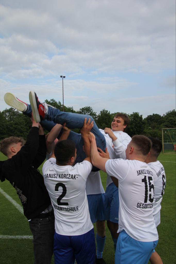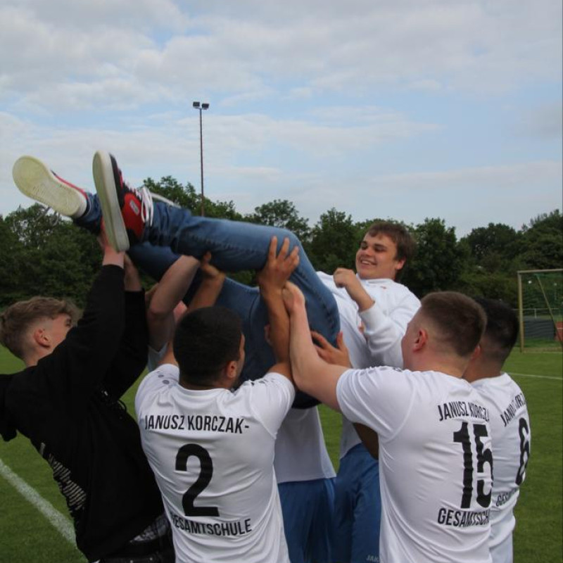 Es ist geschafft! Im Zuge des erstmalig stattfindenden Abimatches in Gütersloh, welches als „Duell der Gesamtschulen" bekannt geworden ist, triumphiert der diesjährige Abiturjahrgang der Janusz Korczak-Gesamtschule auf fulminante Weise mit 10:1 gegen die Anne-Frank-Gesamtschule.