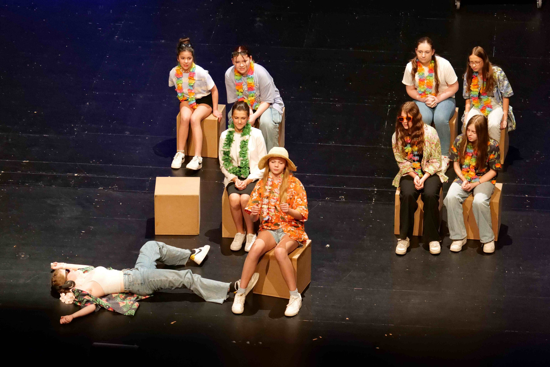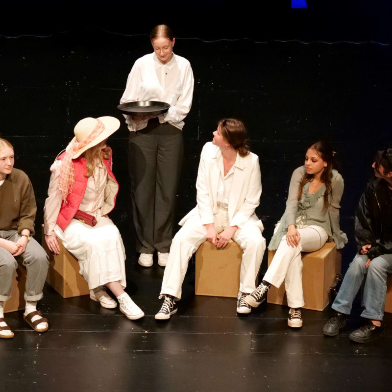 Unter dem Motto „JKG on stage – eine Reise“ präsentierten die Teilnehmerinnen und Teilnehmer ein abwechslungsreiches und unterhaltsames Bühnenprogramm. Neben den „Darstellen und Gestalten“-Kursen aller Jahrgänge zeigten auch der CreActive-Neigungskurs des Jahrgangs 10 sowie die Klasse 6d ihr Können auf der Bühne. Darüber hinaus bot der Literaturkurs der Q1 den Zuschauern einen Vorgeschmack auf seine anstehende Aufführung und die Band-AG der Oberstufe sowie Anne Eichstädt bereicherten den Abend durch musikalische Beiträge.
