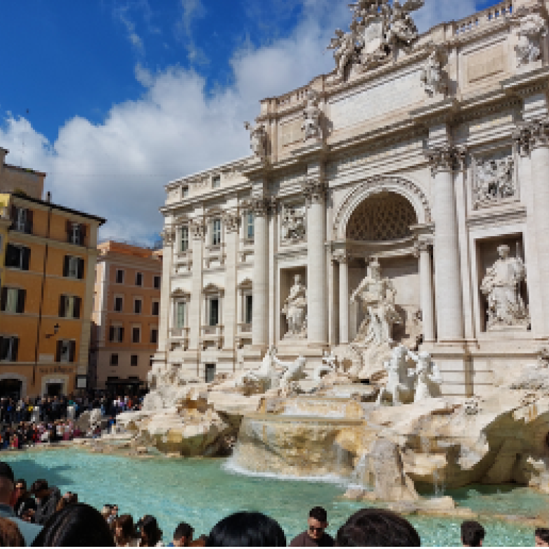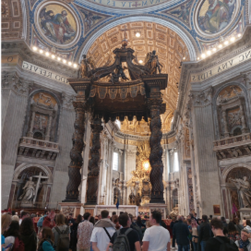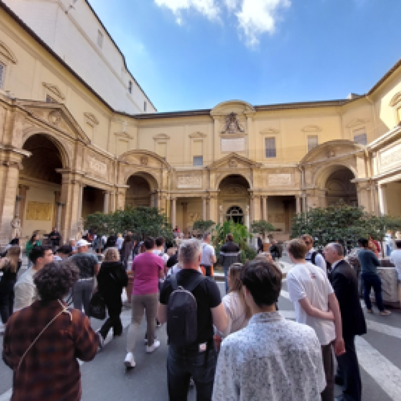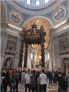 Der erste volle Tag in Rom begann. Frühstück um acht. Danach ging es mit drei Kilometern Fußweg zwischen dem Kolosseum, dem Forum Romanum und weiteren kleinen Straßen und Gassen zum Vatikan, vorbei am Trevi Brunnen, wo wir beeindruckende in Stein gemeißelte Kunst und türkis schimmerndes Wasser betrachten konnten. Im Vatikan betraten wir das Vatikanmuseum und darauf die weltbekannte Sixtinische Kapelle, wobei wir einmalige Statuen und einige auch mit Gold verzierte Wandmalereien anschauen konnten. Manche waren sogar so gezeichnet, dass sie 3D-Effekte hatten. Den restlichen Tag hatten wir Freizeit und haben in kleinen Gruppen weiter die Stadt erkundet. Souvenirs wurden geshoppt, echtes italienisches Eis geschleckt und Wege mit der Metro erkundet.