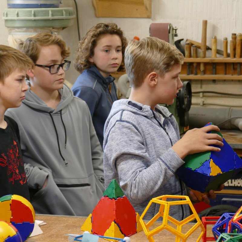 Die insgesamt 45 Sechstklässler durften sich dieses Mal zwischen den vier verschiedenen Projekten „Merge Cube“, „Fibonacci Zahlen“, „Kryptologie“ und „Archimedische Körper“ entscheiden und drei Tage lang tief in die Materie eintauchen. Bei der anschließenden Abschlusspräsentation zeigte sich, dass die Teilnehmerinnen und Teilnehmer nicht nur viel Spaß miteinander hatten, sondern auch ganz viel gelernt hatten.