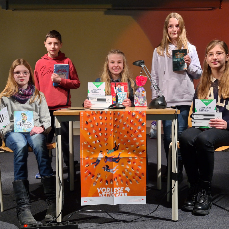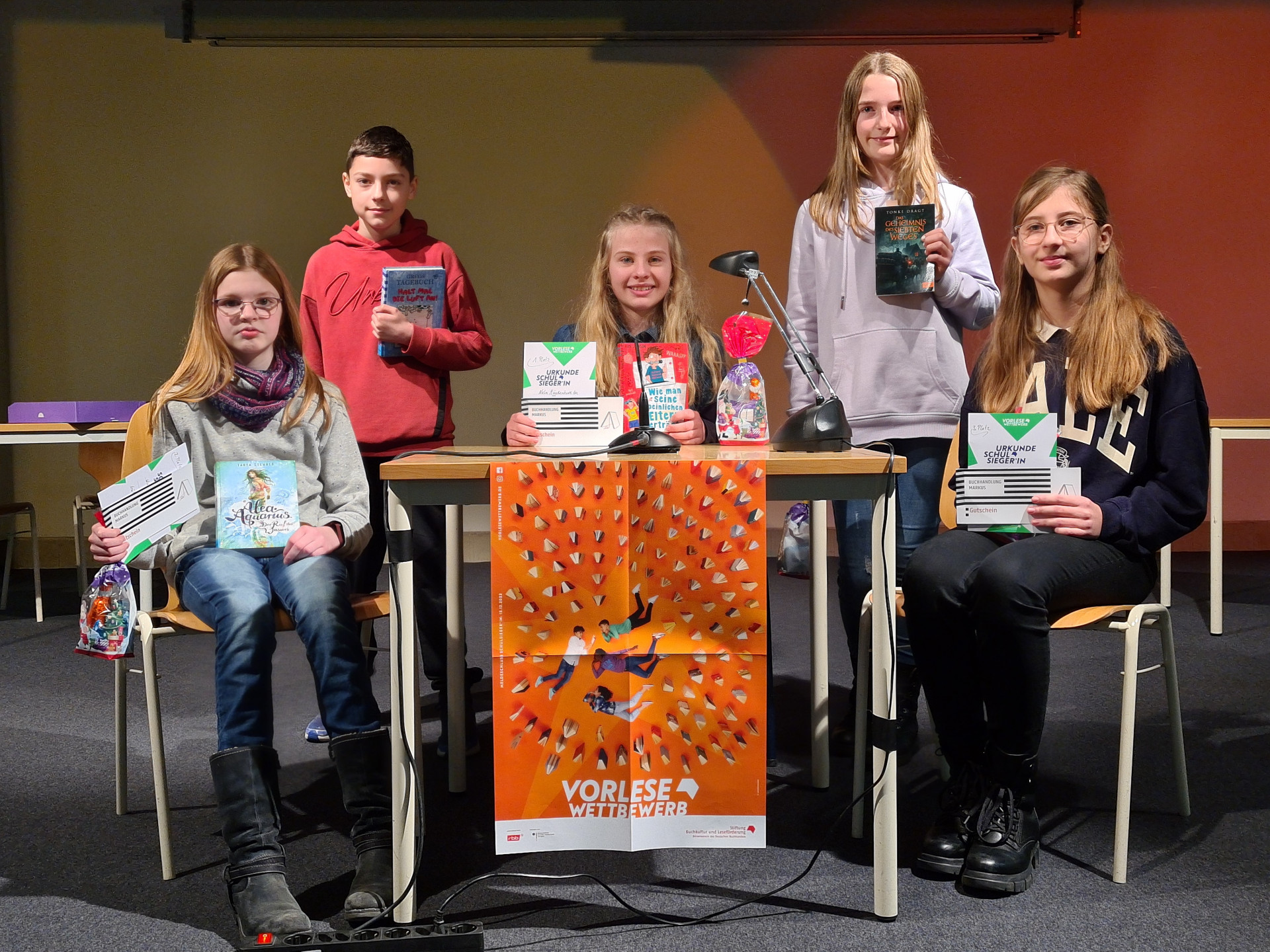 Am diesjährigen Vorlesewettbewerb haben 45 Schülerinnen und Schüler teilgenommen. Mit Buchvorstellungen und dem Vorlesen ausgewählter Textstellen haben die Kinder beim Klassenentscheid das Publikum unterhalten. Die Jury (Schüler, Deutschlehrer und Frau Witte (Schulbibliothek)) bewertete Lesetechnik, Textverständnis und Textgestaltung und war von den Beiträgen beeindruckt.