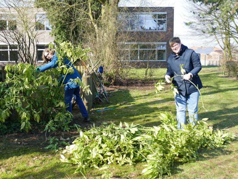 Eltern, Schüler*innen und Lehrer*innen haben sich am Samstag zur ersten Schulgarten-Aktion getroffen und haben fleißig Beete umgegraben, Wurzeln entfernt, die Bäume vom Efeu befreit oder Äste geschnitten.