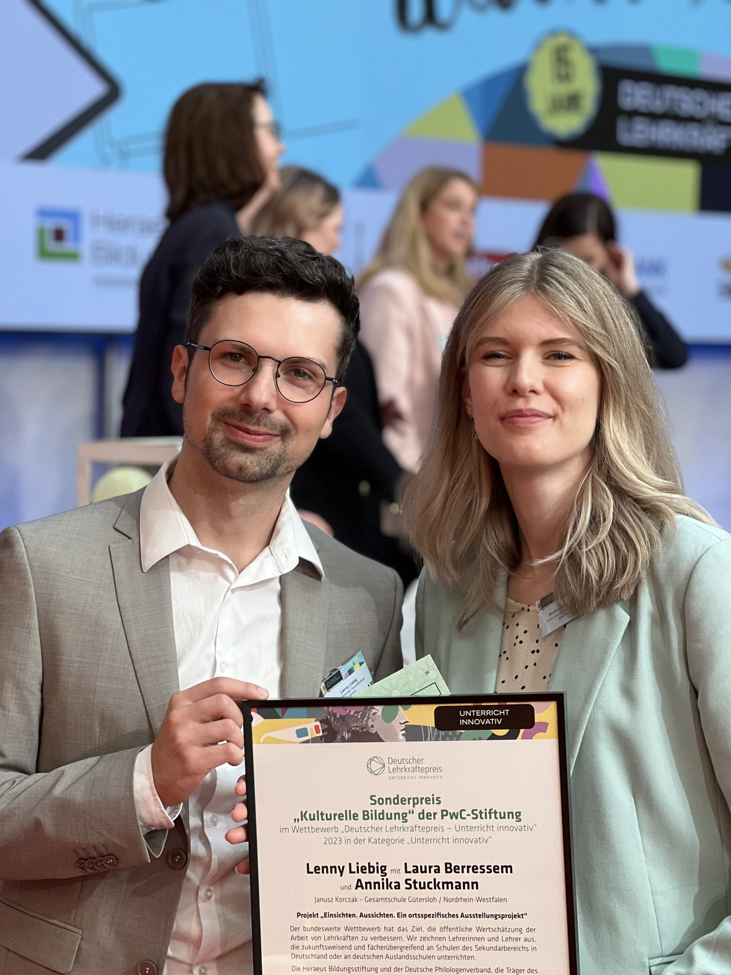 Unsere Kunstlehrkräfte Lenny Liebig, Annika Stuckmann und Laura Berressem erhielten gestern in Berlin den Sonderpreis für ihr Kunstprojekt. Herzlichen Glückwunsch!! Wir freuen uns sehr für unsere Kollegen und für unsere Schule.