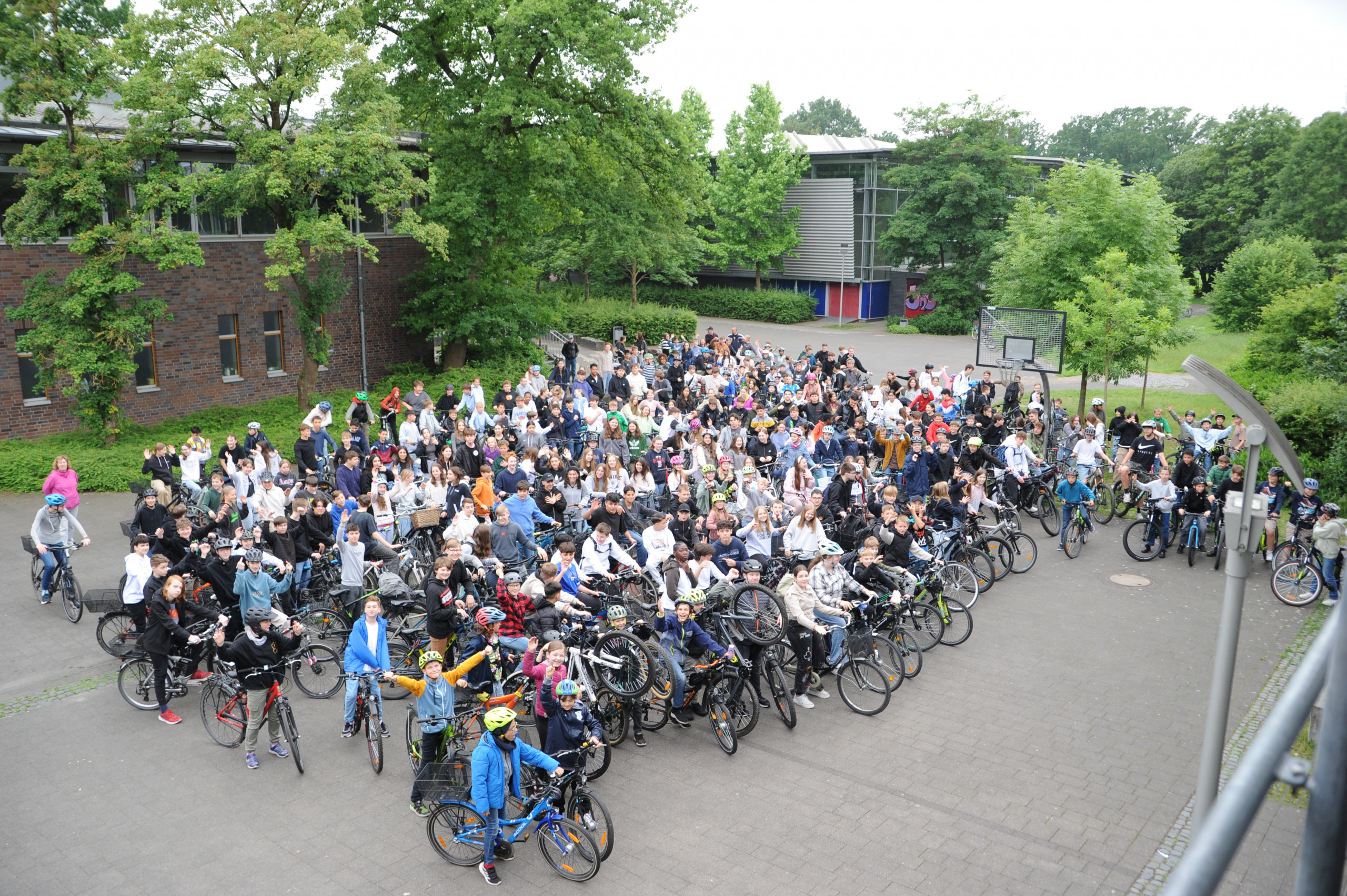 Das gelingt nicht zuletzt durch den Fahrradtag, an dem wieder zahlreiche Schüler:innen und Lehrer:innen trotz des mäßigen Wetters teilnehmen. Dabei wird durch einen offenen Anfang jedem die Anreise mit dem Fahrrad ermöglicht und gezeigt, was was das Radfahren bewirkt.