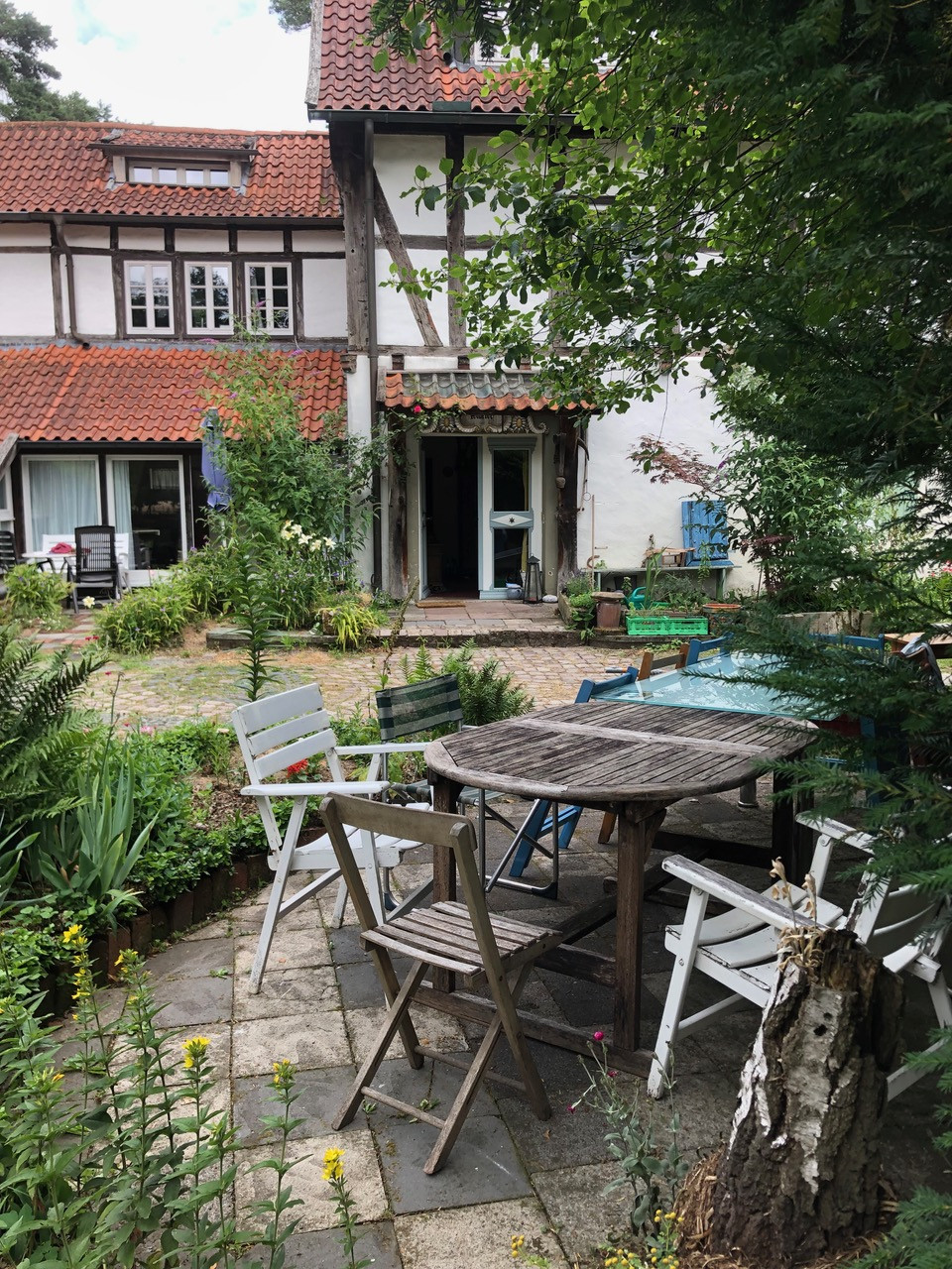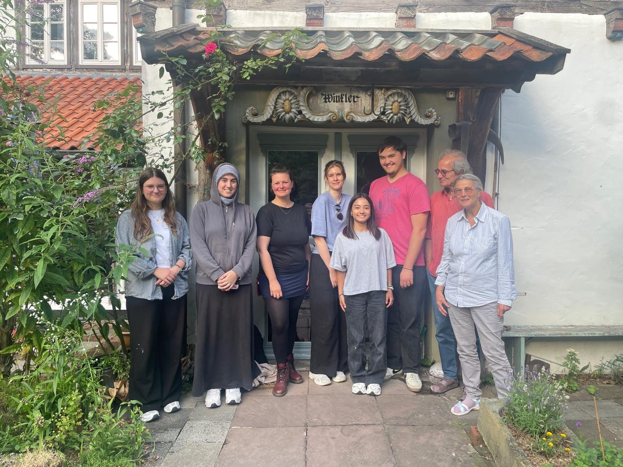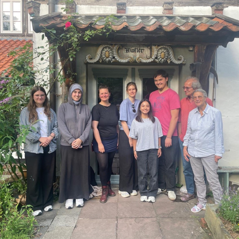 Vom 10.07.25 bis zum 13.07.25 fand ein besonderes Kunstprojekt mit Schüler*innen unserer Schule, der Janusz Korczak-Gesamtschule, statt. Gemeinsam mit der Kunstlehrerin Annika Stuckmann und der freischaffenden Künstlerin Andrea Kaindl verbrachten acht kunstinteressierte Schülerinnen und Schüler der Jahrgangsstufen zehn bis zwölf, vier Tage in Niehorst, um abseits des gewohnten Unterrichts den ehemaligen Wohn- und Arbeitsort des verstorbenen Künstlers Woldemar Winkler zu erkunden und inmitten der Natur kreativ zu werden. Der Startschuss für das erste „Woldemar-Winkler-Sommercamp - Open Space“. Das Pilotprojekt zeichnete sich vor allem durch seine Offenheit aus: Es gab keine vorgegebenen Aufgaben, keine Bewertung und keinen Leistungsdruck. Ziel der Initiatorin*innen war es, Raum für eigene Ideen zu schaffen und den künstlerischen Prozess selbst in den Mittelpunkt zu stellen, ohne zwanghaft ein Ergebnis herbeizuführen. „Das ist eine Erweiterung des schulischen Settings. Ausgehend von dem Spirit des Künstlers Woldemar Winkler, seinen Werken, seinem Arbeits- und Wohnort können sich die Teilnehmenden in einen eigenen künstlerischen Prozess begeben.“, beschreibt die betreuende Künstlerin Andrea Kaindl. Auch die Teilnehmenden schätzten das kreative Schaffen in dem unter Bäumen gelegenen Anwesen der Winklers. Inmitten der Natur schafften Tochter Friederike Winkler-Mey und Ehemann Carsten Mey eine Stimmung zum Wohlfühlen. „Ungestört von der Außenwelt“ arbeiteten die Schüler*innen ganz „ohne Vorgaben“ und lernten Künstler*innen, Kunst und Lehrer*innen auf eine neue Weise kennen. Das freie Arbeiten in einer unterstützenden Umgebung machte dem Titel des Projektes „Open Space“ alle Ehre. Die entstandenen Arbeiten waren so vielfältig wie die Gruppe selbst: Manche malten mit Acrylfarbe oder zeichneten ganz klassisch, andere experimentierten mit Naturmaterialien wie Holz, Blättern und Steinen. Einige wagten es sogar etwas zu bauen. Ganz egal zu welchem Ergebnis die Teilnehmenden kamen, es ging vielmehr um Inspiration und um das Weiterdenken. Mit der Unterstützung der Eheleute Winkler-Mey, sowie dem Gütersloher Verein Fairleben e.V., der Lebensmittelspenden vom Biolandhof Höner und den Essensbeiträgen der Schüler*innen fürs Buffett konnten alle Beteiligten an einer Essens- und Kaffeetafel, so pittoresk wie bei Pettersson und Findus, mit reichlich Mundvorrat versorgt werden. Das regelmäßige Zusammenkommen war zentral für den Austausch und die Reflexion an diesem kunst-geschichtsträchtigen Ort. Es wurden alten Geschichten der Familie Winkler erzählt, wie es war Künstlertochter zu sein und wie sich das Anwesen im Niehorster Wald über die Jahrzehnte veränderte. Finanziell ermöglicht wurde das Camp durch eine Teilförderung vom Kulturamt Gütersloh, einer finanziellen Beteiligung und Essensspende von Fairleben e.V., privaten Sach- und Finanzspenden, sowie vielen ehrenamtlichen Stunden aller Beteiligten. Herzlichen Dank an die Schulleitung mit Heidrun Elbracht, die die Idee von Anfang an mitgetragen hat, Annika Stuckmann, die das Ganze vor Ort und in der Schule betreut hat, den Gastgebern Friederike Winkler-Mey & Carsten Mey, der Künstlerin Andrea Kaindl für das Umsetzen dieser Vision, dem Verein fairleben e.V., allen Spender*innen und Unterstützer*innen, sowie dem Kulturamt Gütersloh. „Wir Schüler*innen hoffen auf eine Wiederholung!“ Bei dieser Prämiere waren folgende Schüler*innen beteiligt: Nihal Sivük (JG 12), Valentin Schmedtkord (JG 12), Frieda Salzmann (JG 12), Kaja Rinkens (JG 12), Matilda Hornberg (JG 11), Ksenia Rugi (JG 11), Irem Kizilirmak (JG 11), Lilo Rinkens (JG10)