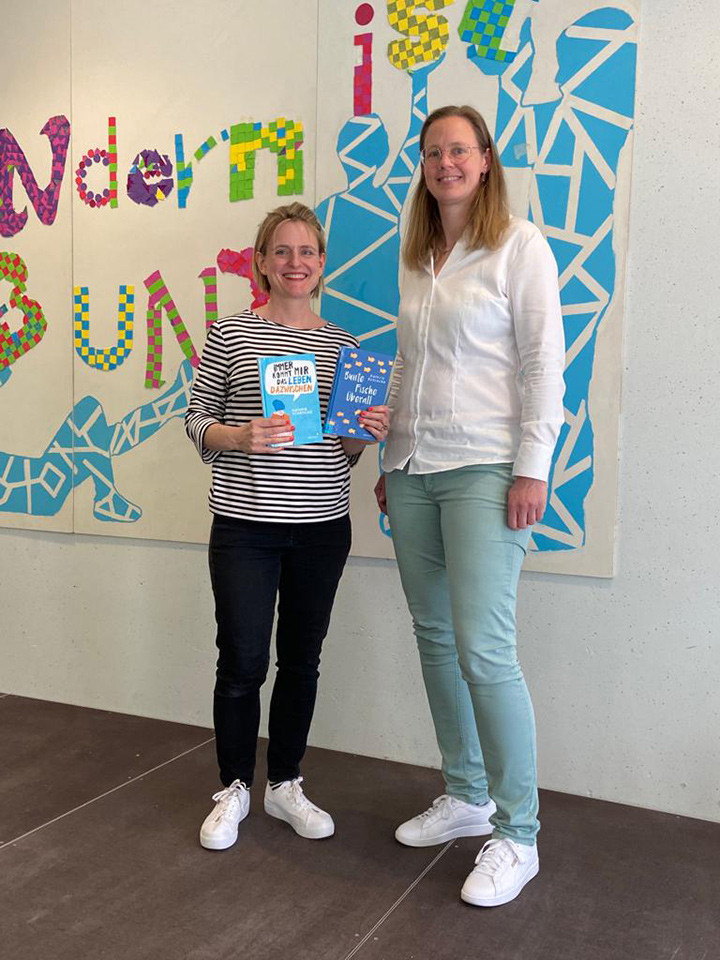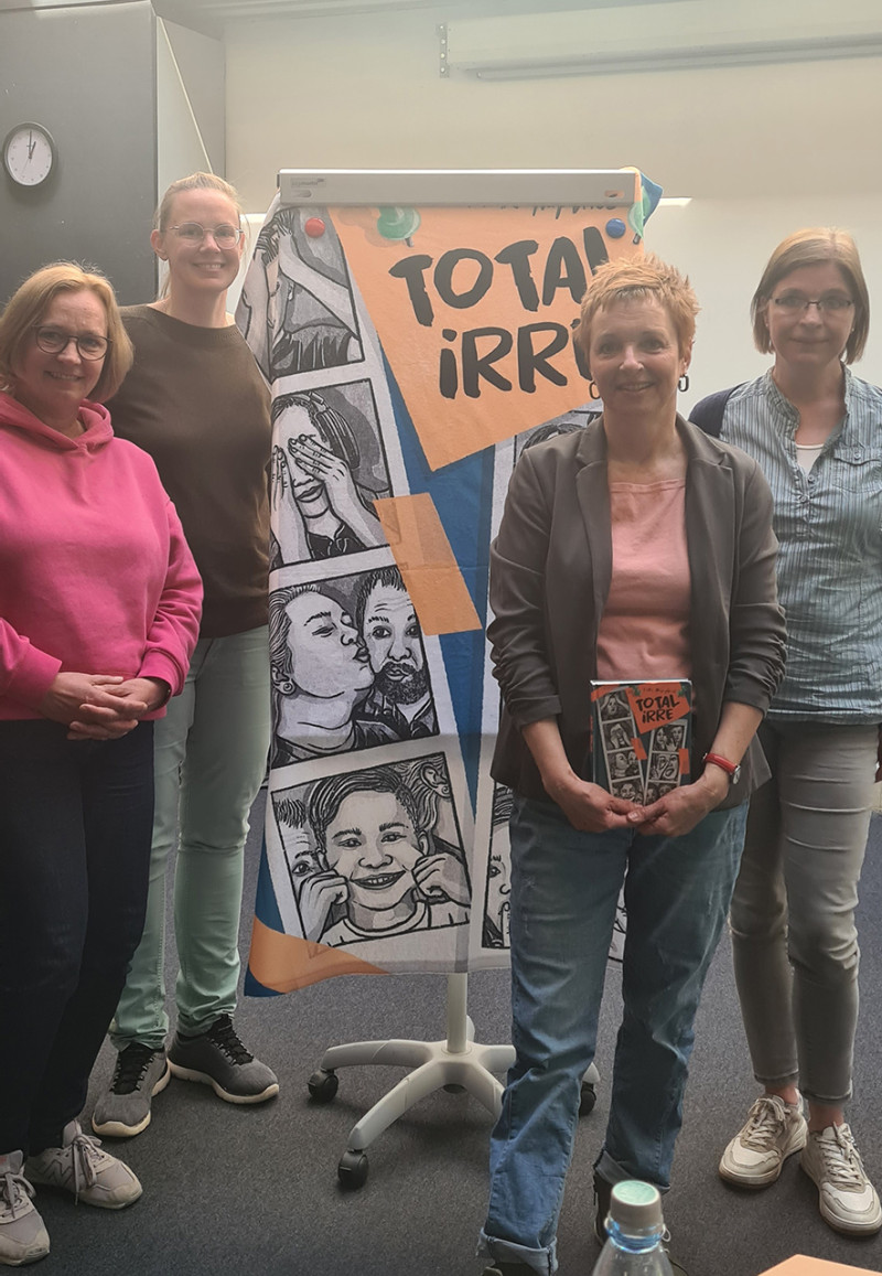 Am Dienstag, 03.05.2023 war anlässlich des Gütersloher Lesefrühlungs Jutta Nymphius zu Gast in Gütersloh. Nach der Lesung in der Stadtbibliothek kam sie gerne auf Wunsch der Klassenlehrer*innen des 7. Jahrgangs direkt zu uns in die Aula, um ihr Buch „Total irre“ vorzustellen:
