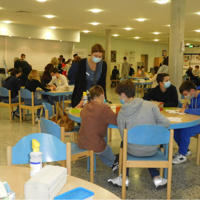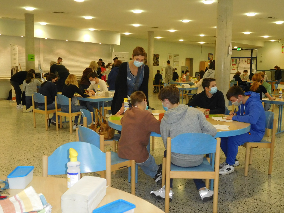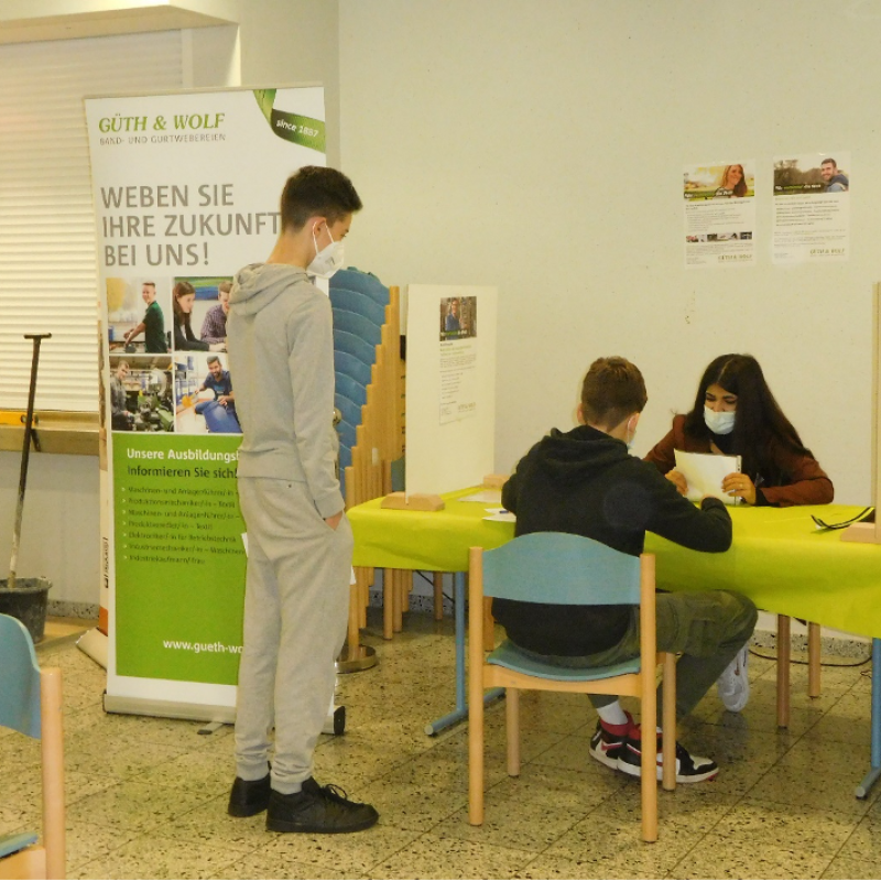 Geschäftiges Treiben herrschte zum Auftakt der Berufsorientierungswoche (4.10.-8.10.2021) in der Mensa der Janusz Korczak – Gesamtschule.