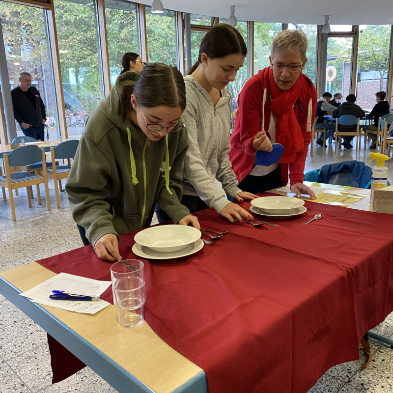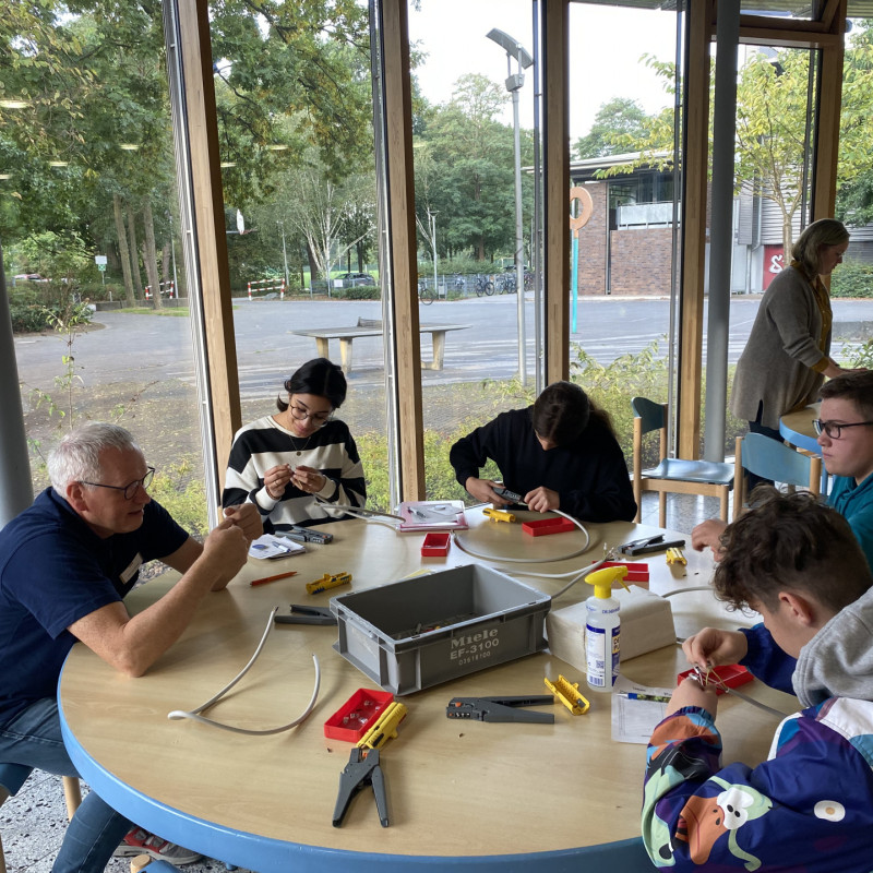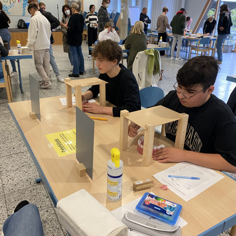 Der Berufsparcours der Stadt Gütersloh ist ein Baustein in einer spannenden Projektwoche rund um das Thema „Berufswahl“. Hier können die Schülerinnen und Schüler verschiedene Dinge ausprobieren und vielleicht ungeahnte Fähigkeiten an sich selbst entdecken. Die Teilnahme unterschiedlicher Akteur*innen aus Betrieben, der Arbeitsagentur, von Schule und dem Fachbereich Jugend und Familie, ermöglichen den Jugendlichen allerlei Fragen zu stellen und sich über die verschiedenen beruflichen Wege zu informieren.