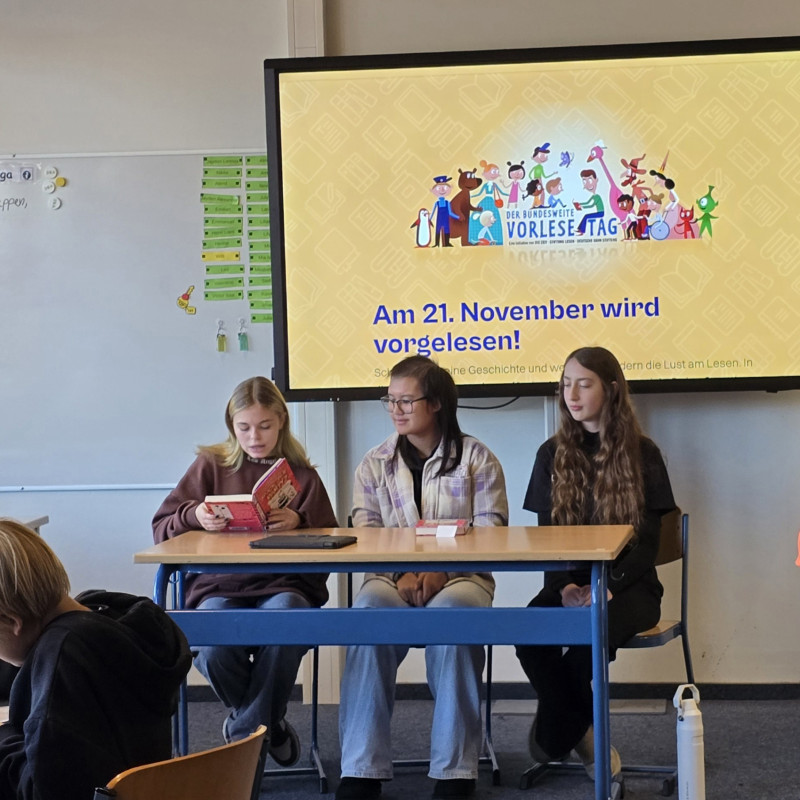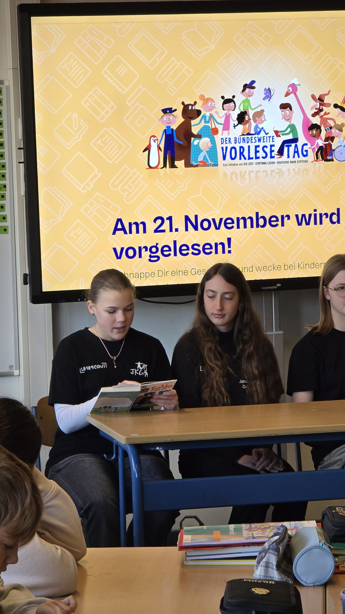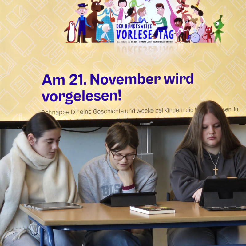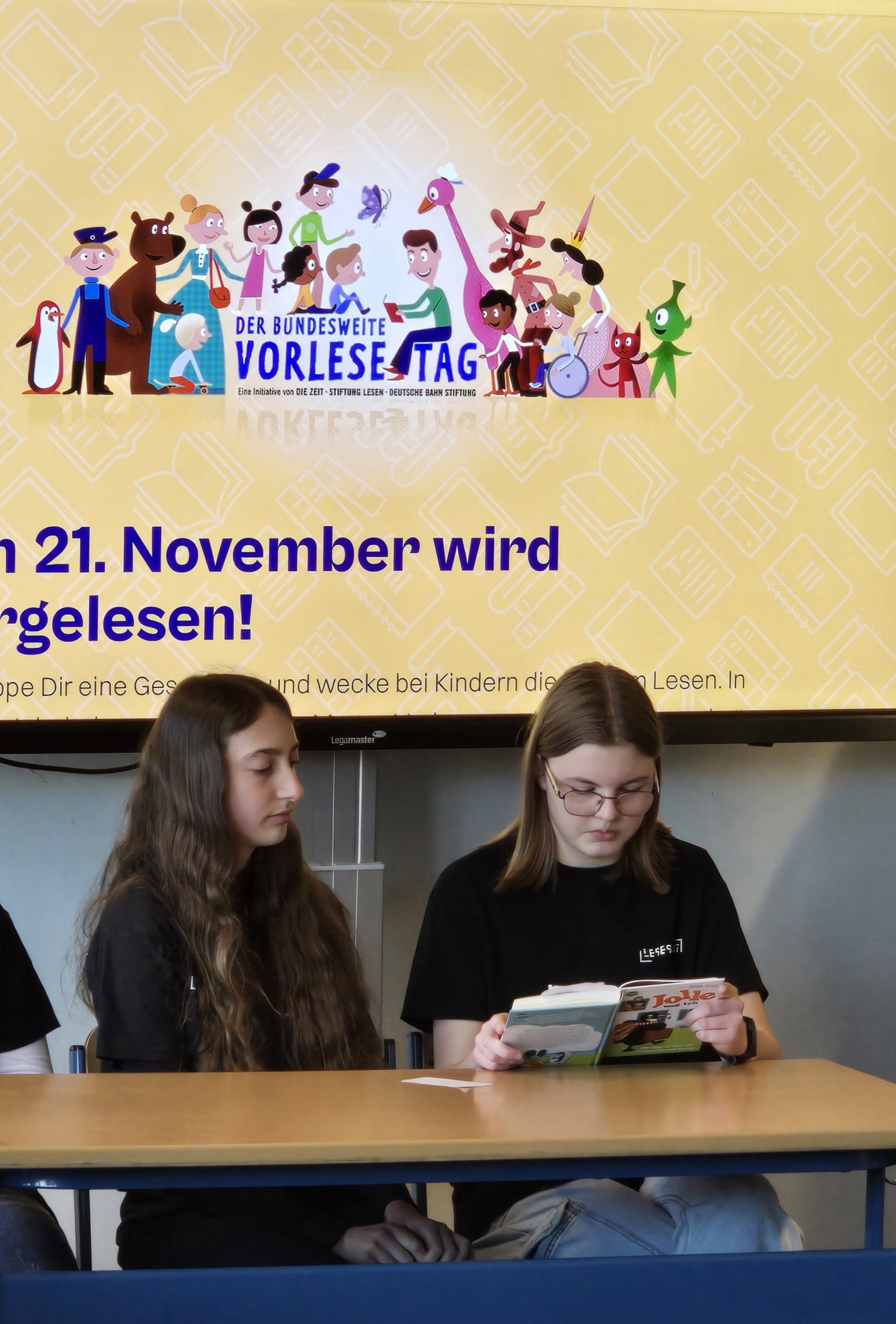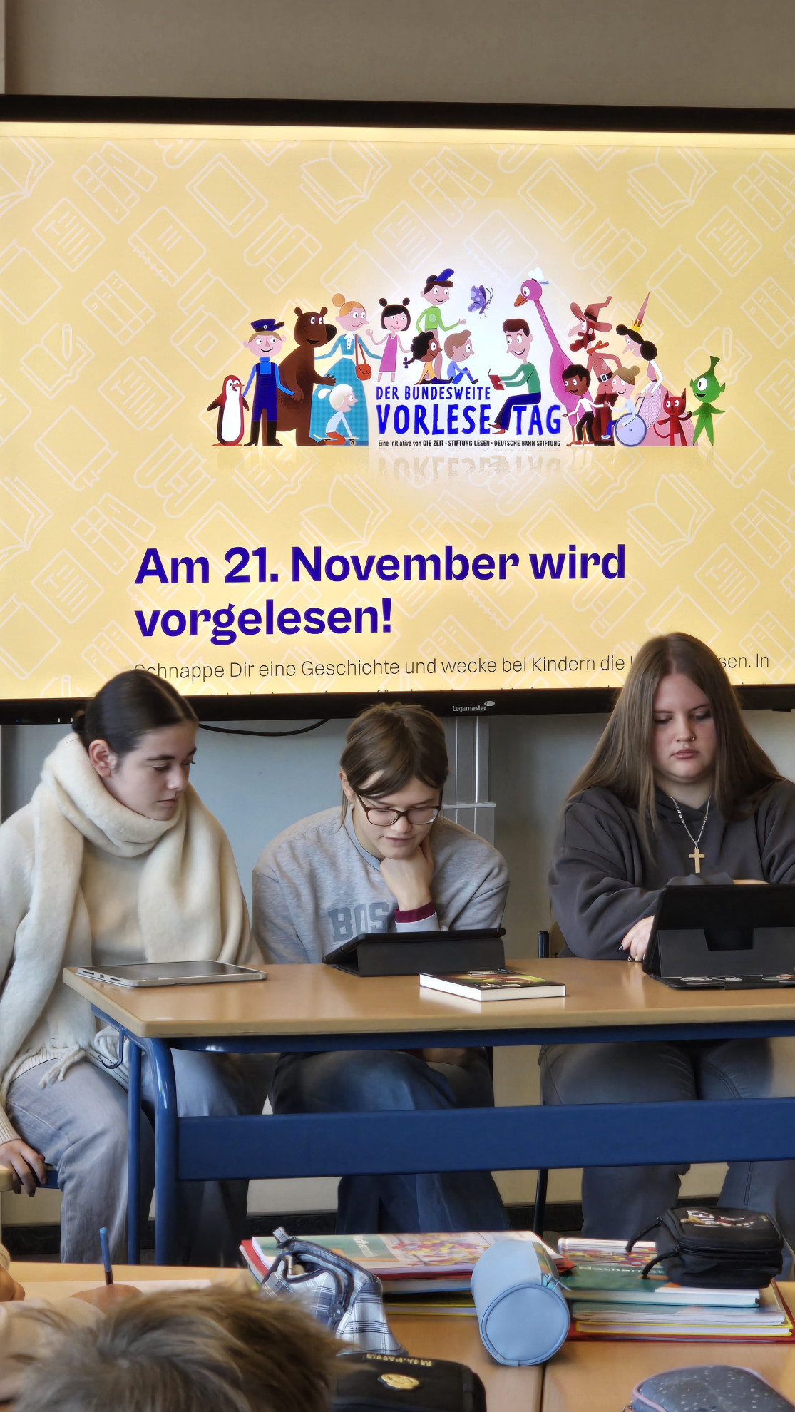 - Das digitale Vorlesefest wird in der Schulmediothek auf dem Legamaster während des Schultages übertragen.