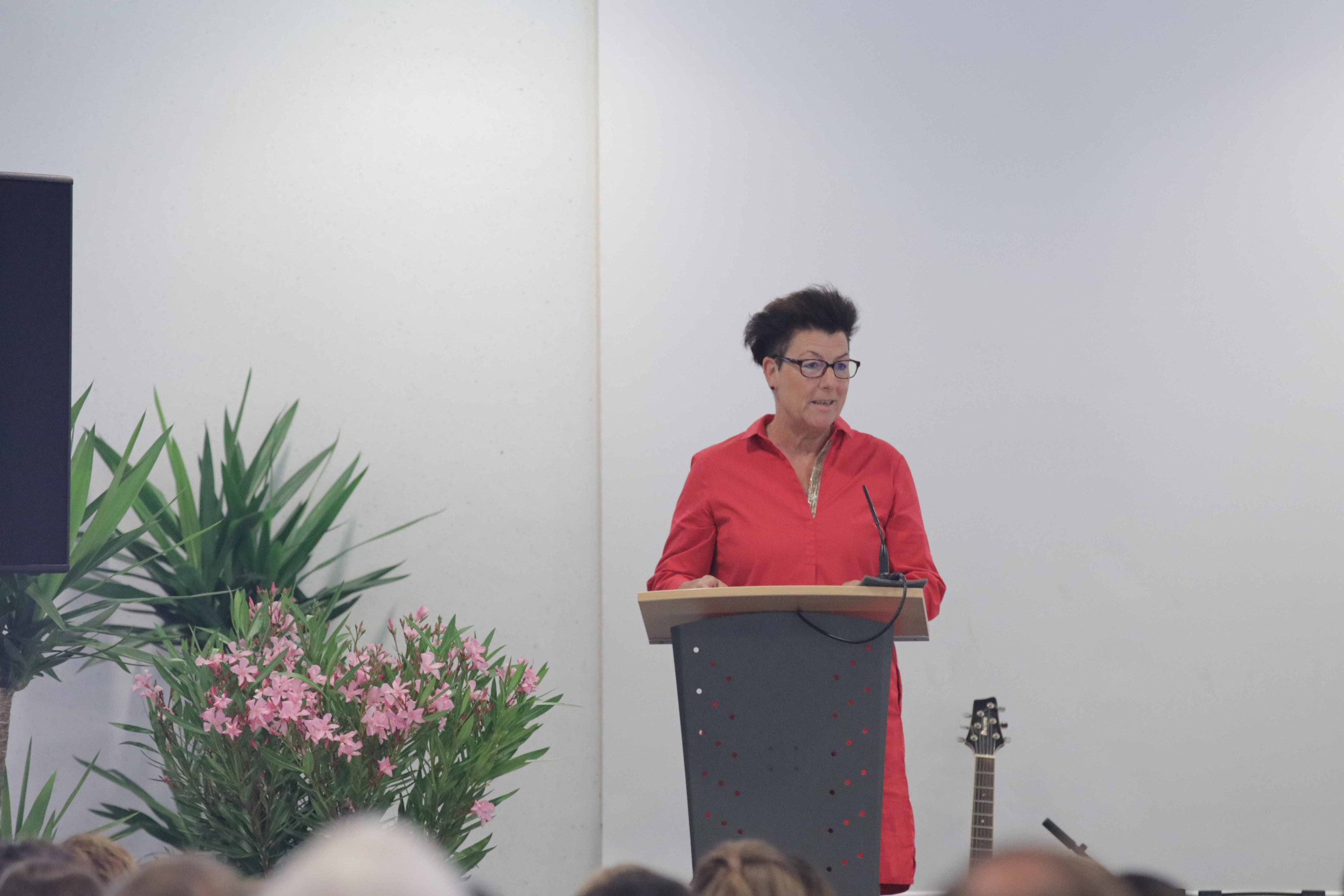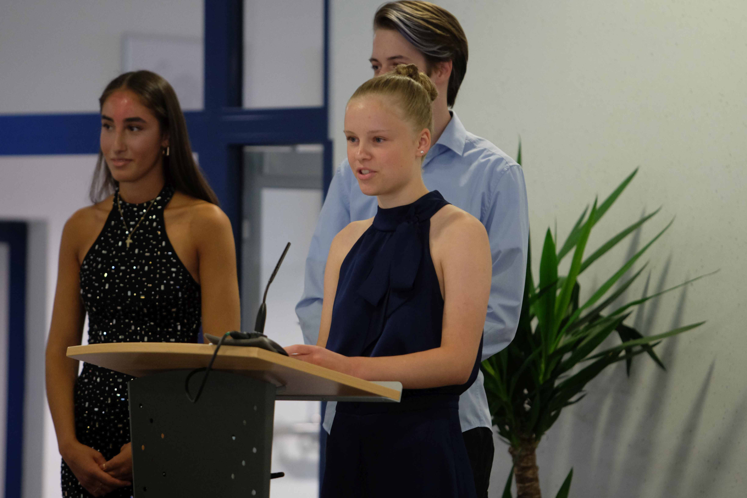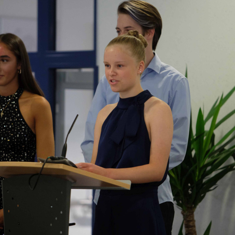 Schulleiterin Frau Elbracht richtete den Blick auf die gesellschaftlichen Herausforderungen unserer Zeit und betonte in ihrer Rede die Bedeutung demokratischer Werte. Sie rief die Schülerinnen und Schüler dazu auf, Verantwortung zu übernehmen und durch Menschlichkeit, Toleranz und Respekt aktiv zum Gelingen unseres Zusammenlebens beizutragen.