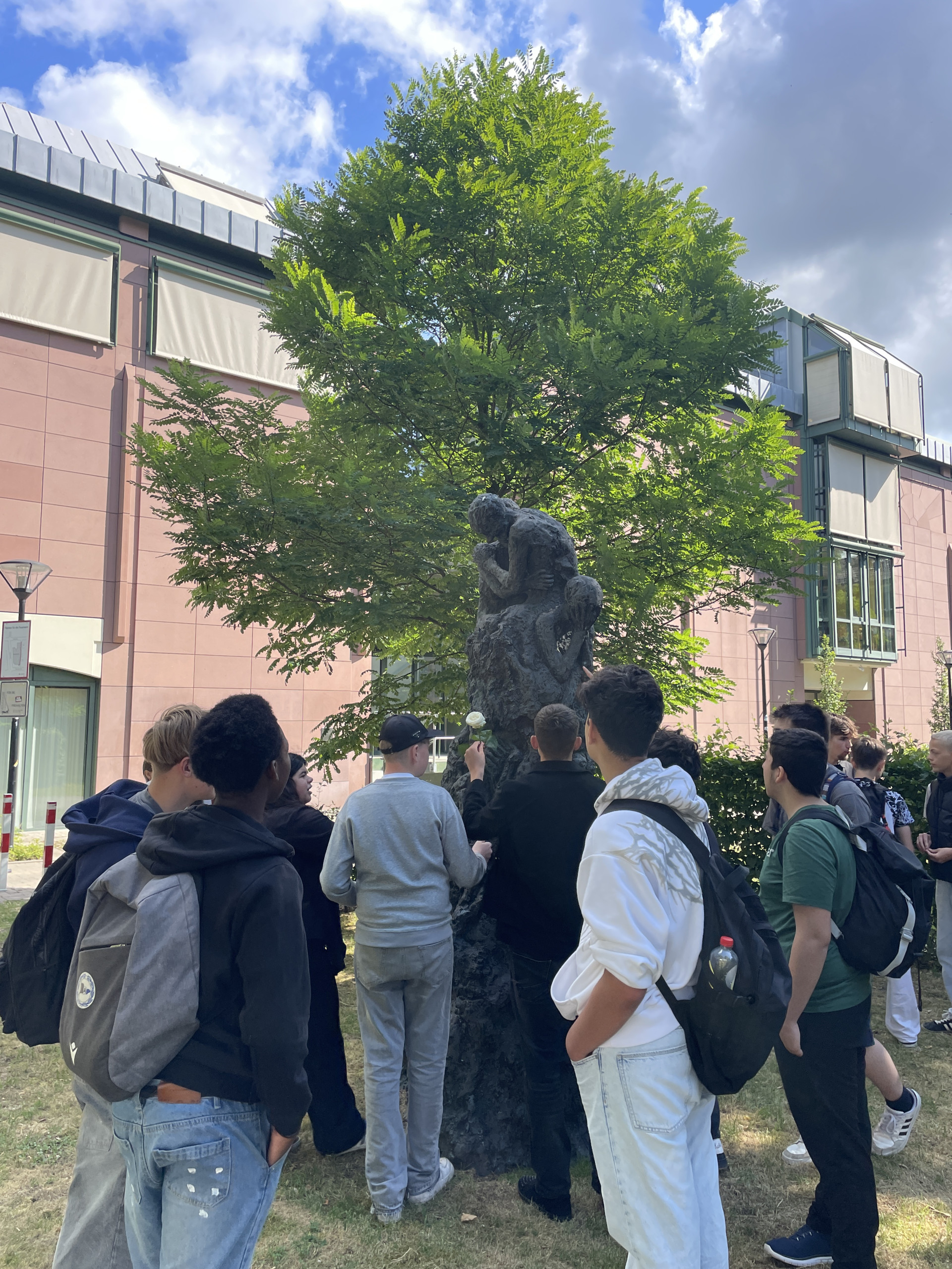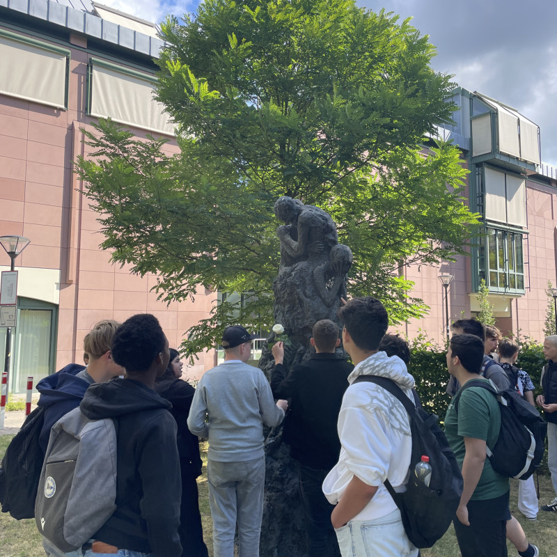Um sich mit der Geschichte des Nationalsozialismus nicht nur allgemein, sondern konkret in Gütersloh auseinanderzusetzen, hat die Klasse 9a vor den Sommerferien einen dreistündigen Rundgang durch die Gütersloher Innenstadt unternommen.