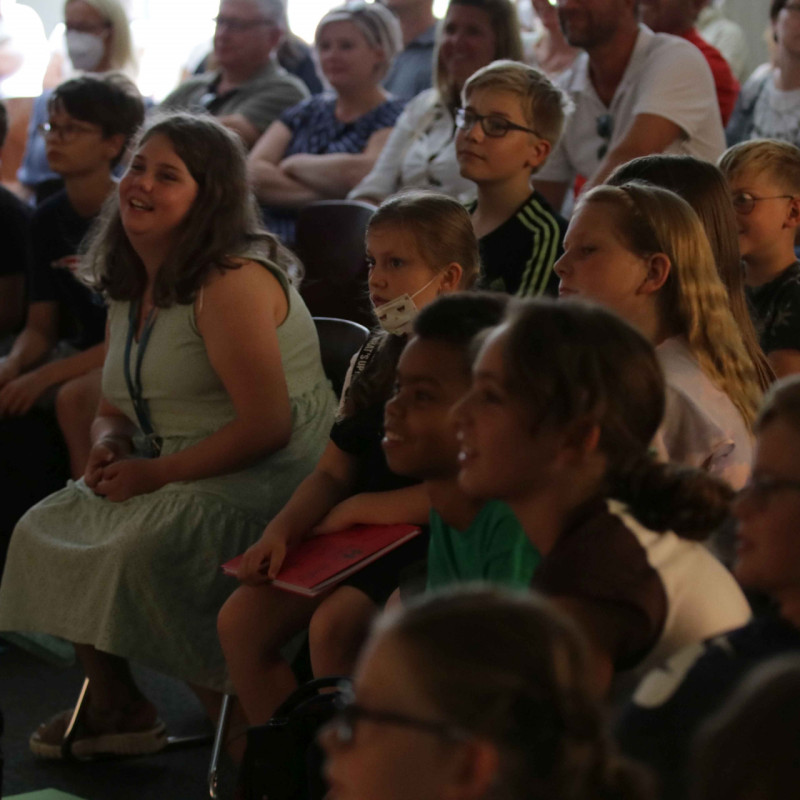 164 Jungen und Mädchen begannen am Donnerstag, den 11.08. ihre Schullaufbahn an der JKG. Drei Klassen ließen sich zunächst in der Aula von Frau Elbracht , Frau Garrido und vor allem ihren Klassenlehrerteams begrüßen und gingen dann für eine erste Unterrichtsstunde in ihre Klassen. Die anderen drei Klassen begannen ihren Einschulungstag mit den neuen Mitschüler*innen im Klassenraum und wurden dann in der Aula noch einmal offiziell begrüßt.