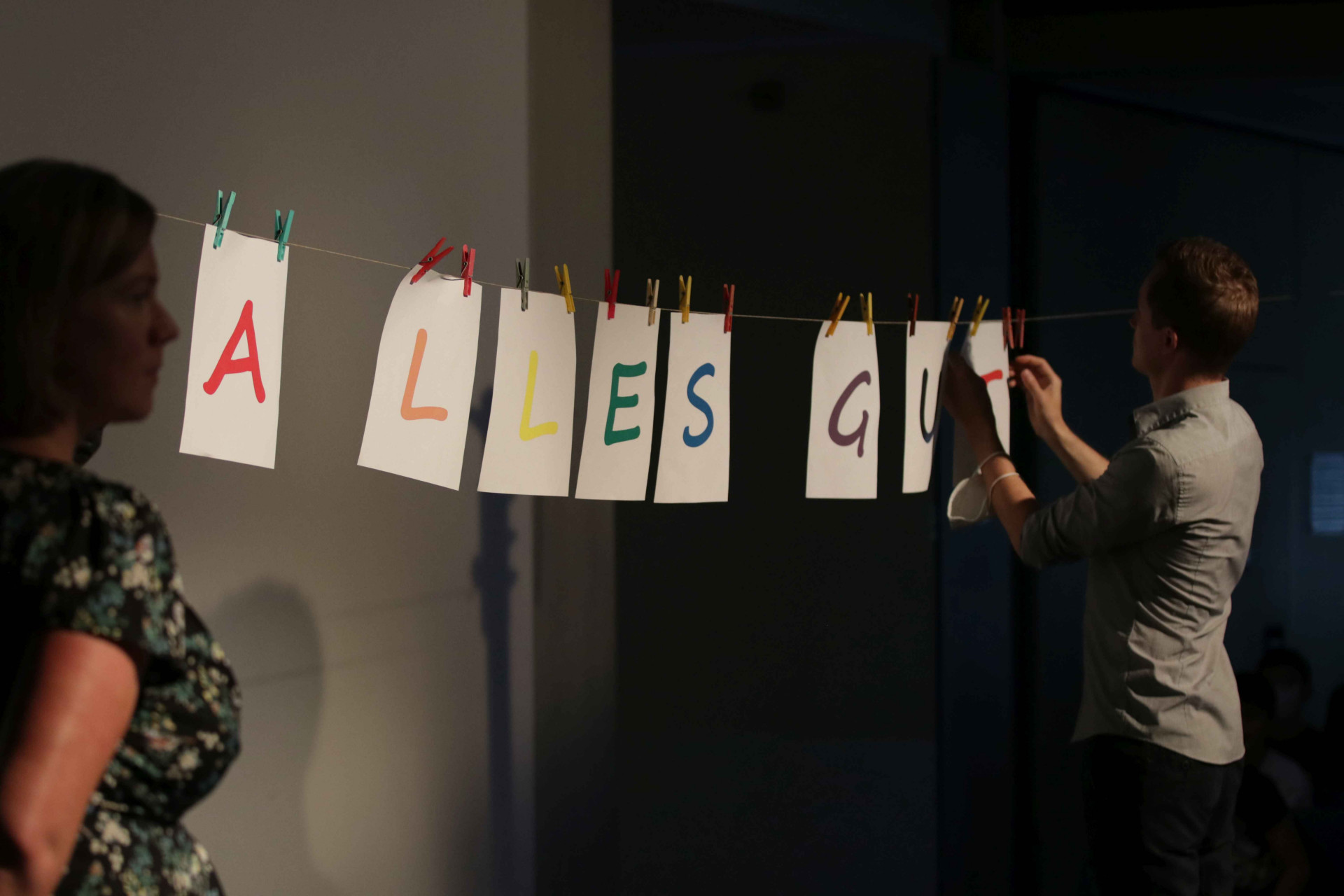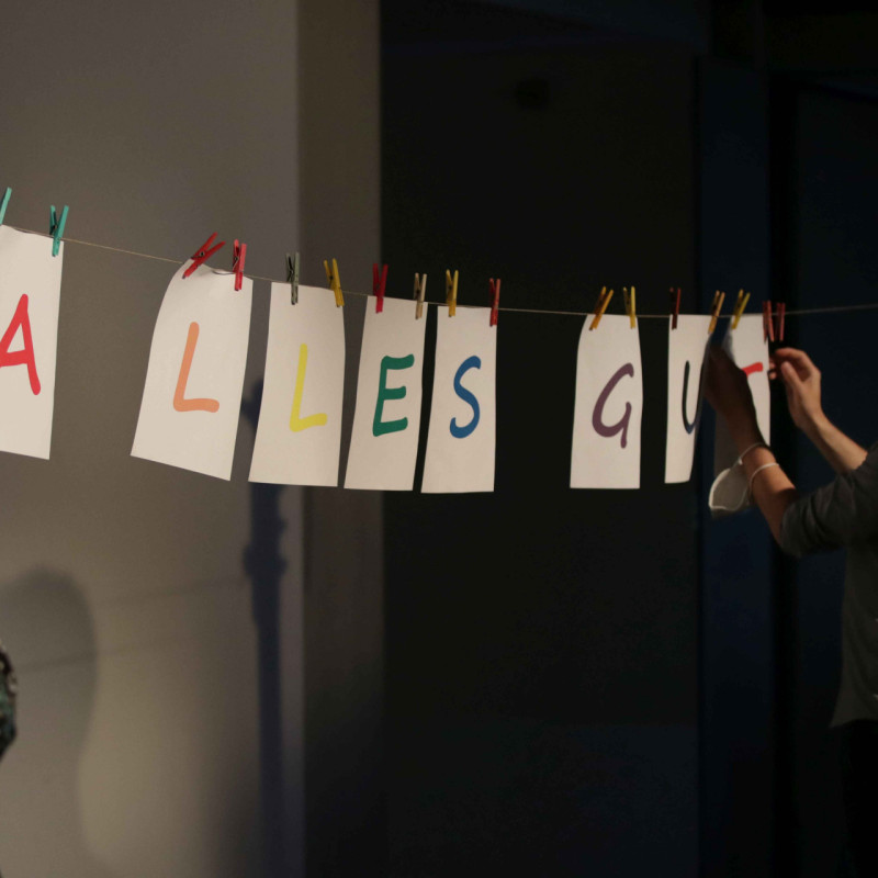 An einer langen Leine im Jahrgangsflur aufgehängt, sorgen die guten Wünsche jeden Tag wieder für ein herzliches Willkommen und gute Laune.