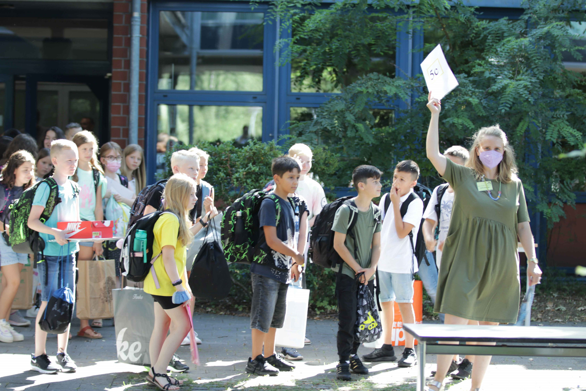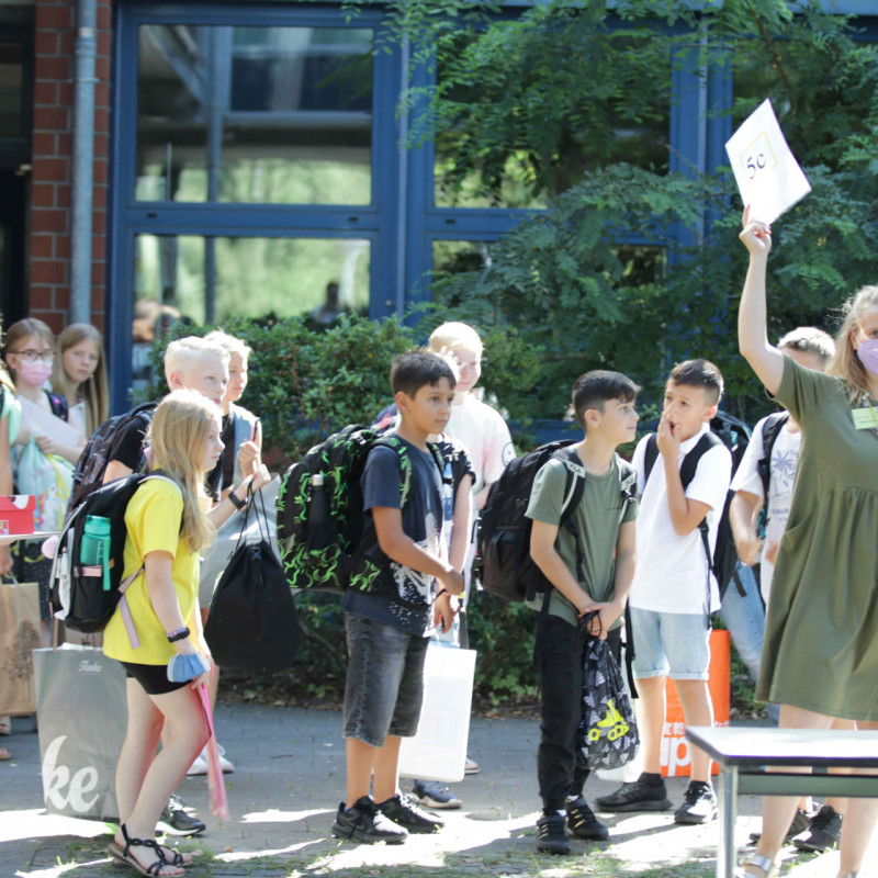 Bei sommerlichem Sonnenschein und guter Laune erlebten alle einen guten Start, der begleitet wurde von vielen guten Wünschen der Klassenlehrer*innen. Von „Achte auf dich und andere“ über „Lass dich nie entmutigen“ und „sei immer du selbst“ bis hin zu „Unternimm so oft es geht etwas mit deinen Freunden“ und „Entwickle neue Ideen“, ergab sich aus den Anfangsbuchstaben der übergeordnete Wunsch „Alles Gute!“