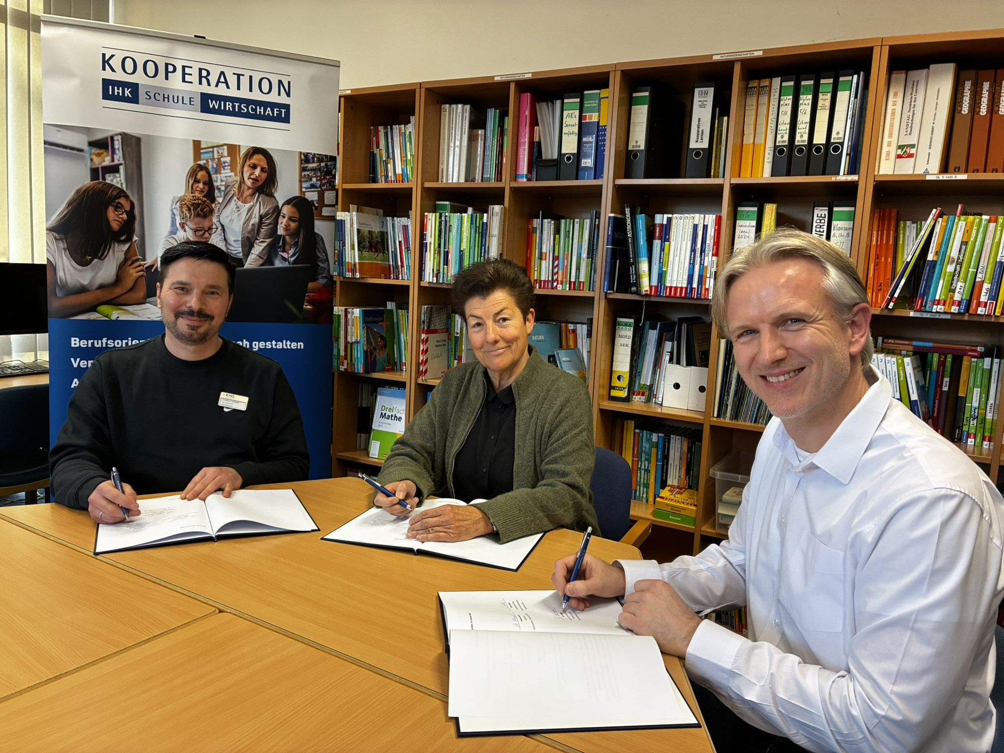 Unsere Schule freut sich über eine zukünftige Zusammenarbeit mit der Katholischen Hospitalvereinigung, die das Angebot im Bereich der Berufsorientierung deutlich erweitert. Die Kooperation ist durch und mit der Industrie- und Handelskammer (IHK) zustande gekommen, die beide Partner zusammengeführt und den Austausch begleitet hat.