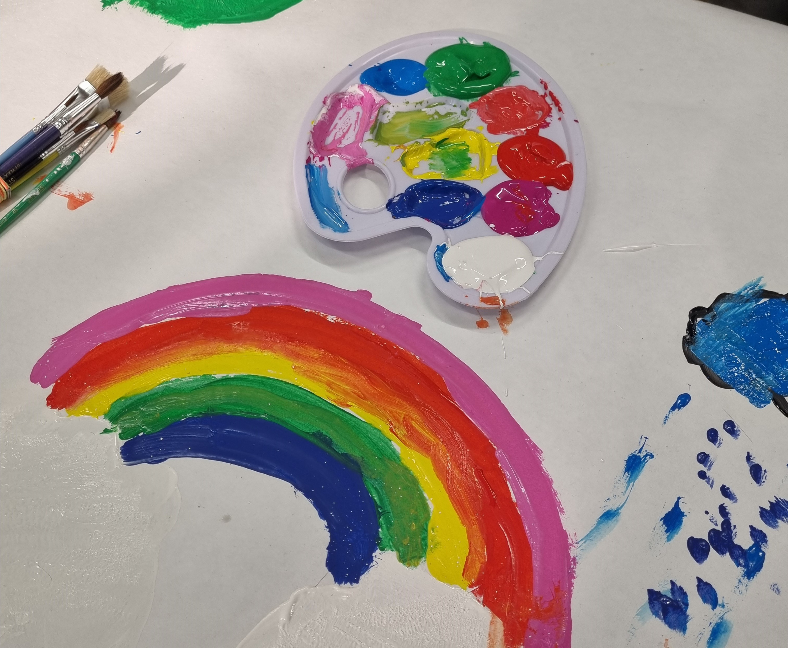 Das Projekt „Bildfreundschaften“ beschäftigte sich im Kern mit der Auseinandersetzung von interessierten Schülerinnen und Schüler mit dem Medium Malerei. Dabei wurden in Blockterminen zunächst sehr lange Papierbahnen mit rund 60 Interessierten des Jahrgangs 5 bemalt. Dabei war kein Thema vorgegeben. Die Schülerinnen und Schüler standen somit vor der Aufgabe, sich abzustimmen, in Gruppen Bildideen zu entwickeln und diese dann umzusetzen. Es entwickelte sich eine sehr kreative Dynamik, bei der Bildentwürfe zu Ende geführt worden sind oder Ideen wurden überworfen und schließlich übermalt. Durch das Experimentieren mit der Farbe, dem Farbauftrag und dem Trägermaterial entstanden neue kreative Ansätze, ein Kunstwerk entstehen zu lassen. Dabei lernten die Schüler und Schülerinnen sich nicht nur gegenseitig kennen, sondern auch persönliche Präferenzen, wie ein Kunstwerk entstehen kann. Spielerisch mussten sie so kreativ eigene und bildnerische Grenzen überschreiten. Im Projekt stand das gemeinsame Interpretieren und kreative Umsetzen von Bildern im Vordergrund, um einerseits den kreativen Prozess zu fördern, andererseits um sich selbst weiterzuentwickeln.