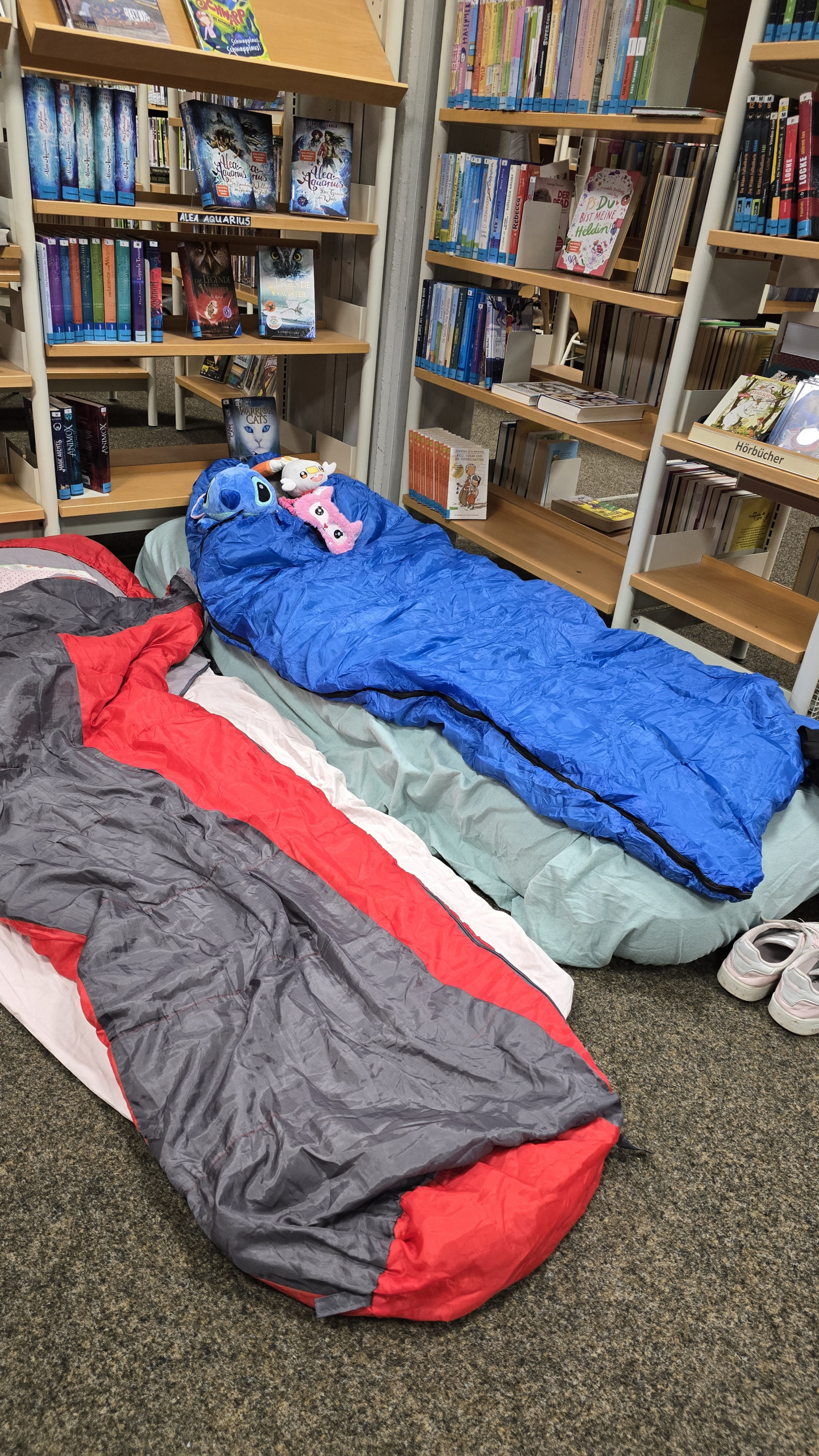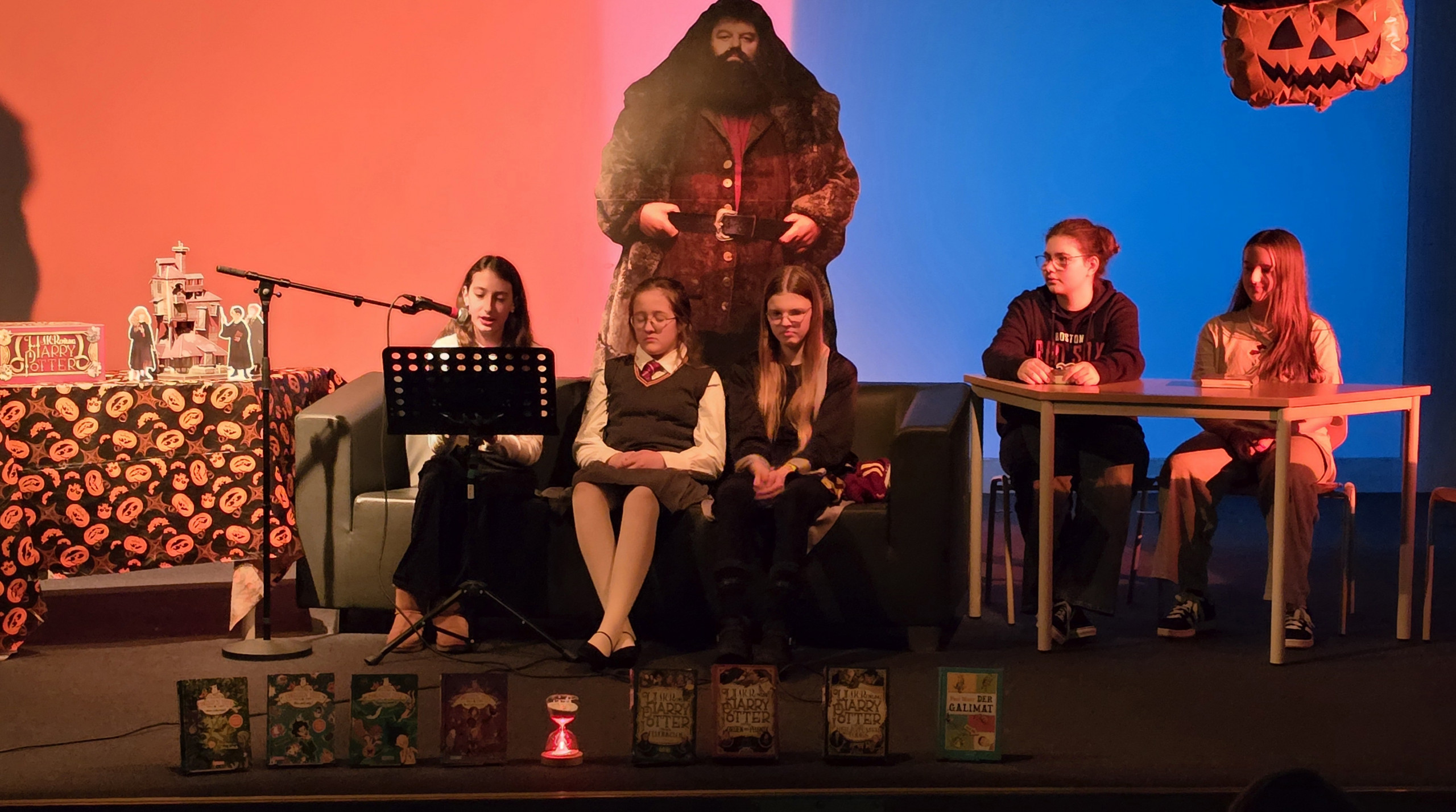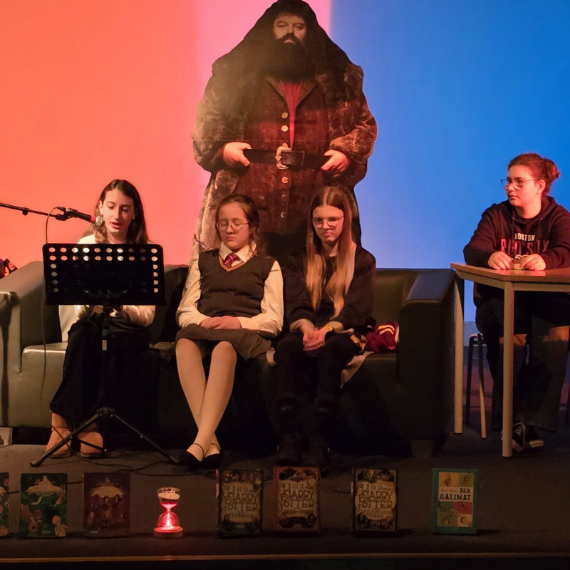 In der letzten Schulwoche vor den Herbstferien fanden an 2 Tagen für jeweils 3 Klassen Schulübernachtungen statt. Die rund 160 Schülerinnen des 5 Jahrgangs fieberten ihren Übernachtungspartys entgegen. Die Auftaktveranstaltung wurde von Schulbibliothekarin B. Witte, Lehrerin A. Bordel-Soleimankhani und ihren Lesescouts organsiert. Um 19 Uhr startete die Bücher-Show: Insgesamt wurden 6 Bücher / Geschichten vorgelesen. Die 80 Zuhörerinnen lauschten gebannt und gingen sogar noch zum Abschluss auf eine wundervolle Traumreise.