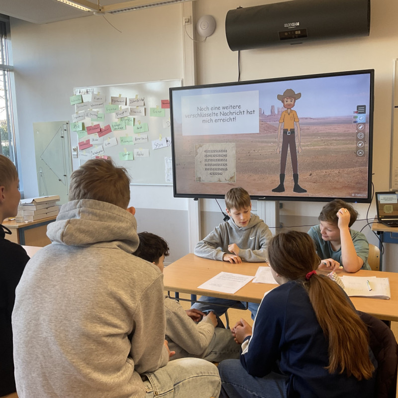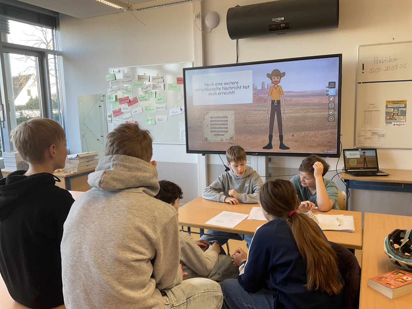 Die Gruppe „Kryptologie" (Herr Schneider) tauchte in die Welt der Verschlüsselung ein und erkundete, wie Nachrichten geheim gehalten werden und wurden. Während der Caesar-Code noch vergleichsweise leicht zu knacken war, stellte die Skytale die Gruppe vor echte Herausforderungen. Aber aufgeben? Keine Option. Mit Ausdauer, Köpfchen und einem langen Atem öffnete sich am Ende doch noch das Zahlenschloss und der Schatz war erobert.