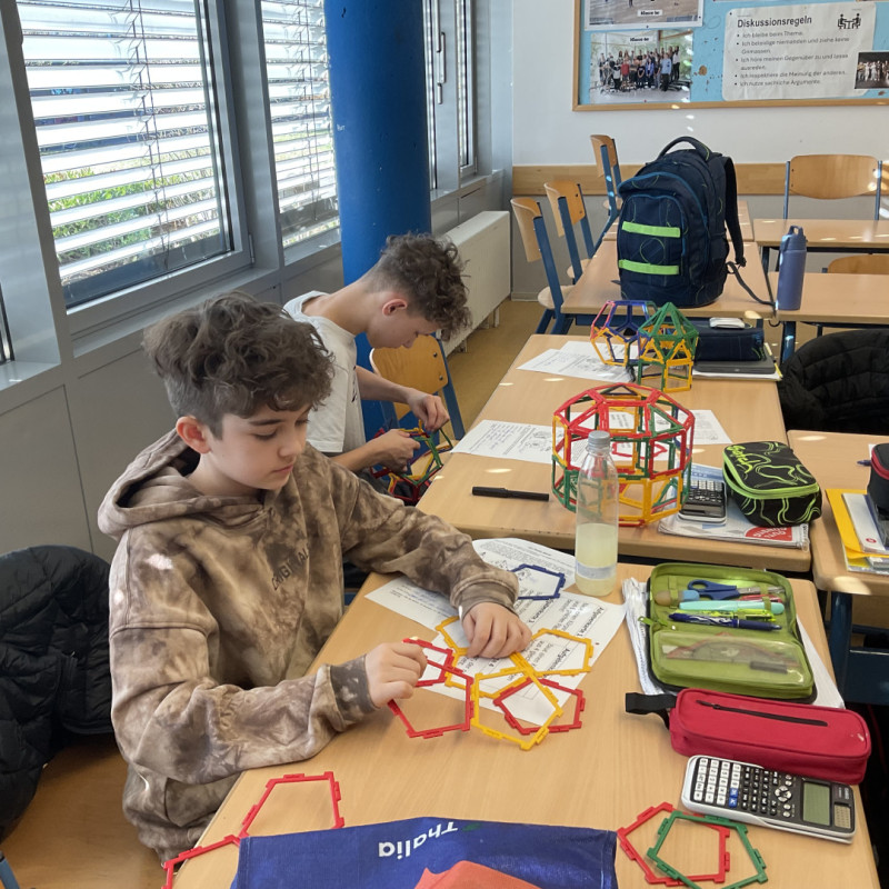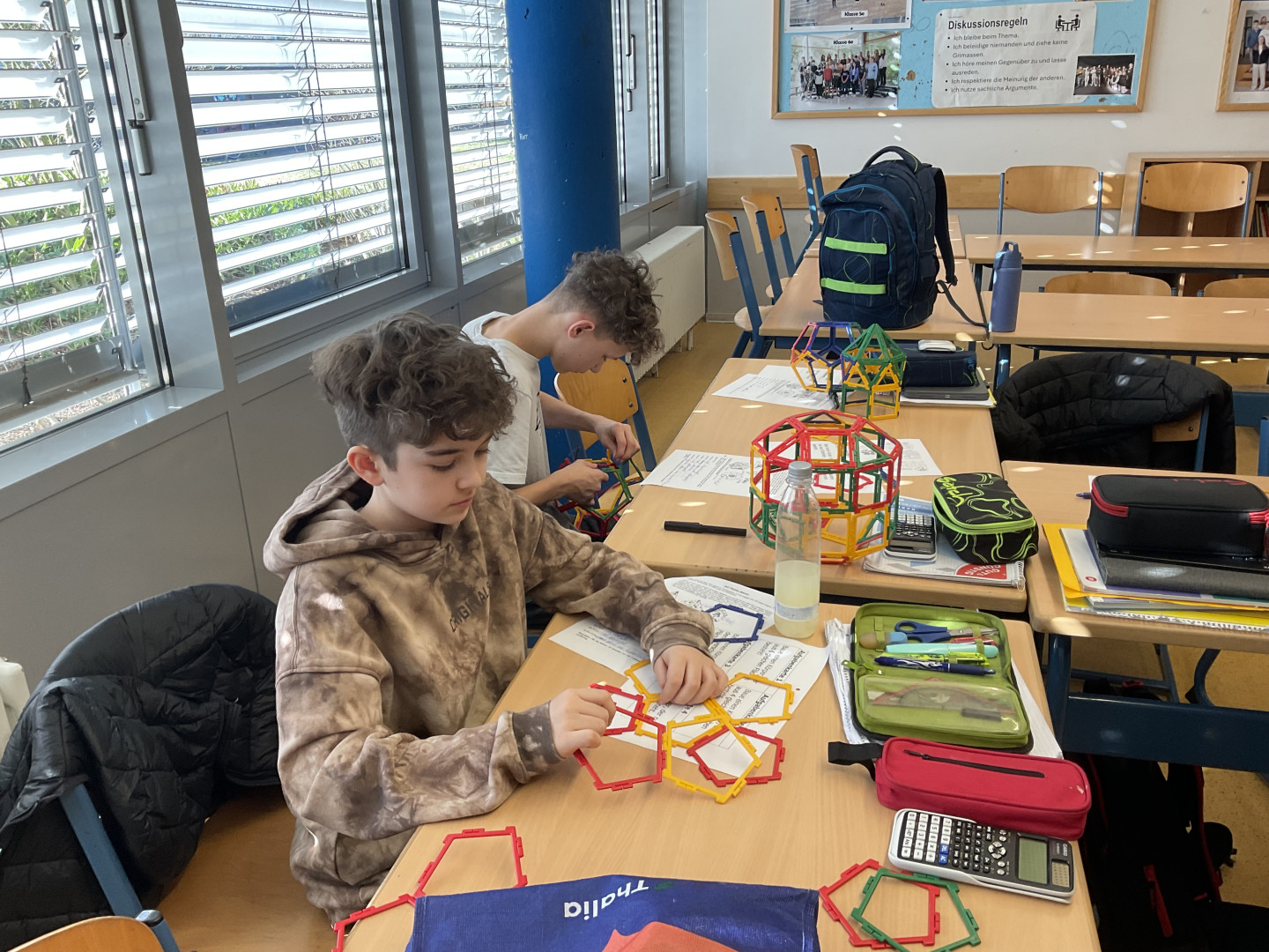 Schon zum fünften Mal hat im März unsere Schülerakademie Mathematik für den Jahrgang 7 stattgefunden. In diesem Jahr haben 16 Schülerinnen und Schüler drei Tage lang bewiesen, dass Mathe weit mehr ist als Rechnen auf Papier. In drei Projektgruppen wurde gegrübelt, gebaut, diskutiert und ausprobiert.