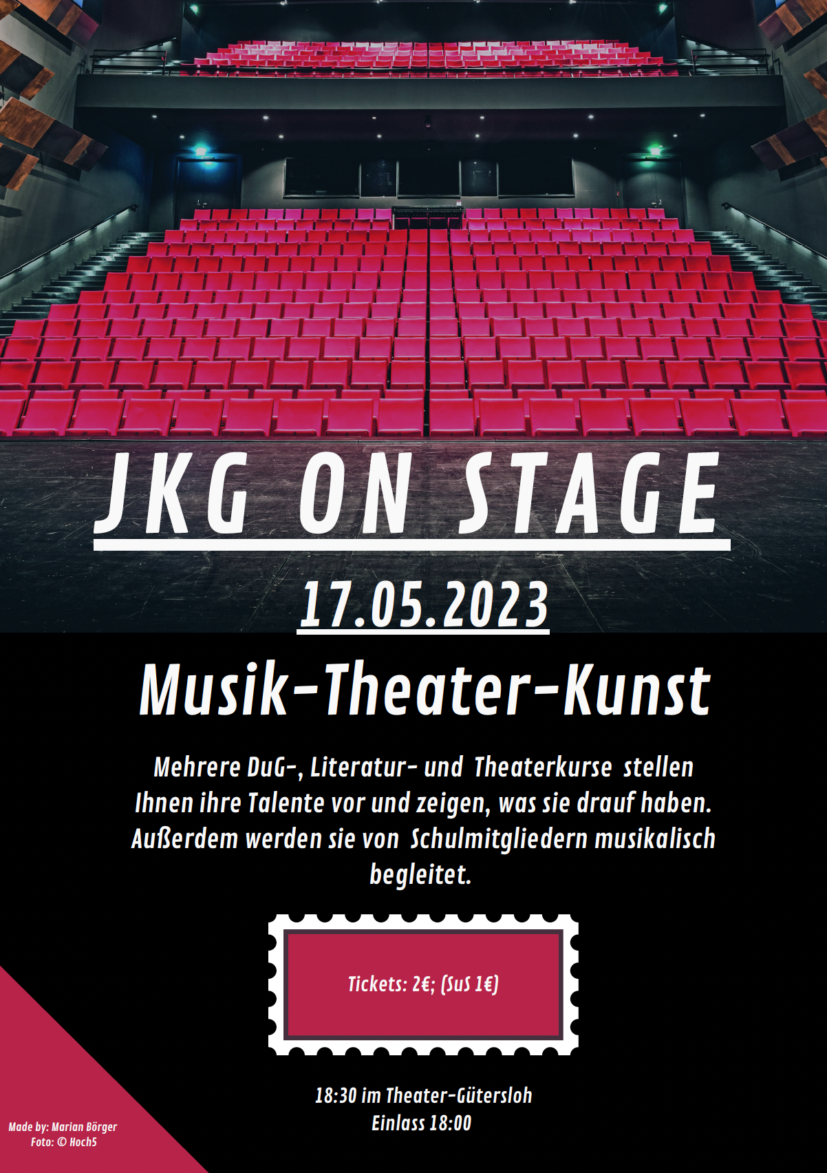 Wir heißen Euch und Sie im Theater Gütersloh am 17.05. herzlich willkommen. Das Programm startet um 18.30 Uhr. Tickets können ab sofort im Schulbüro erworben werden.