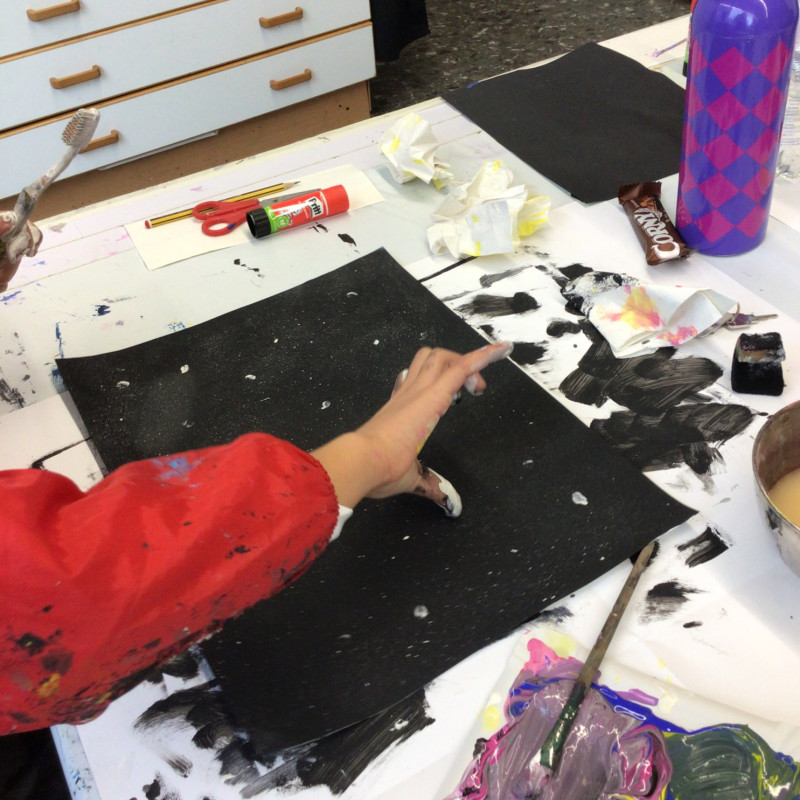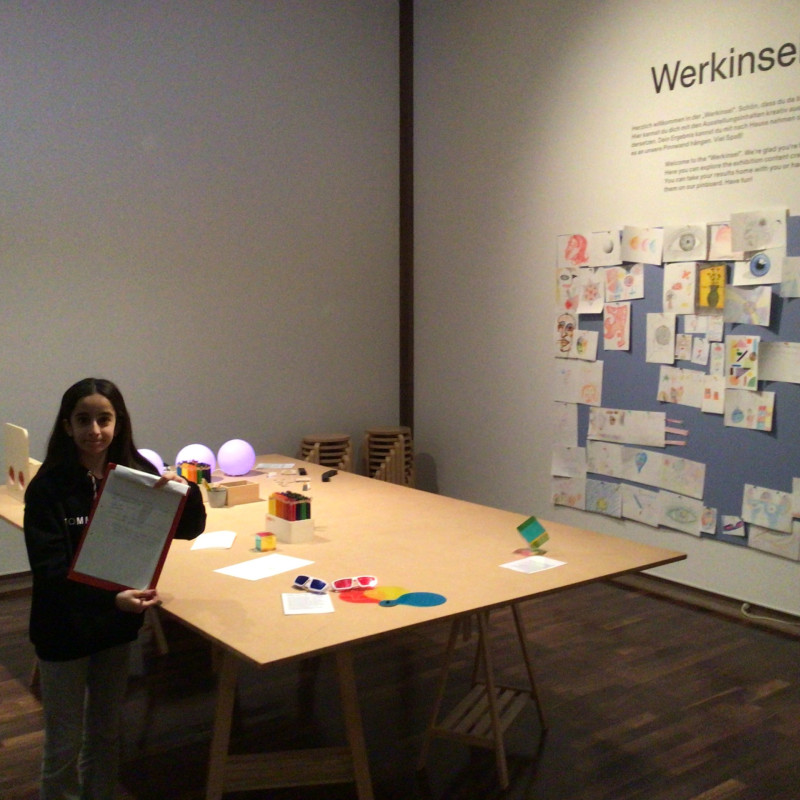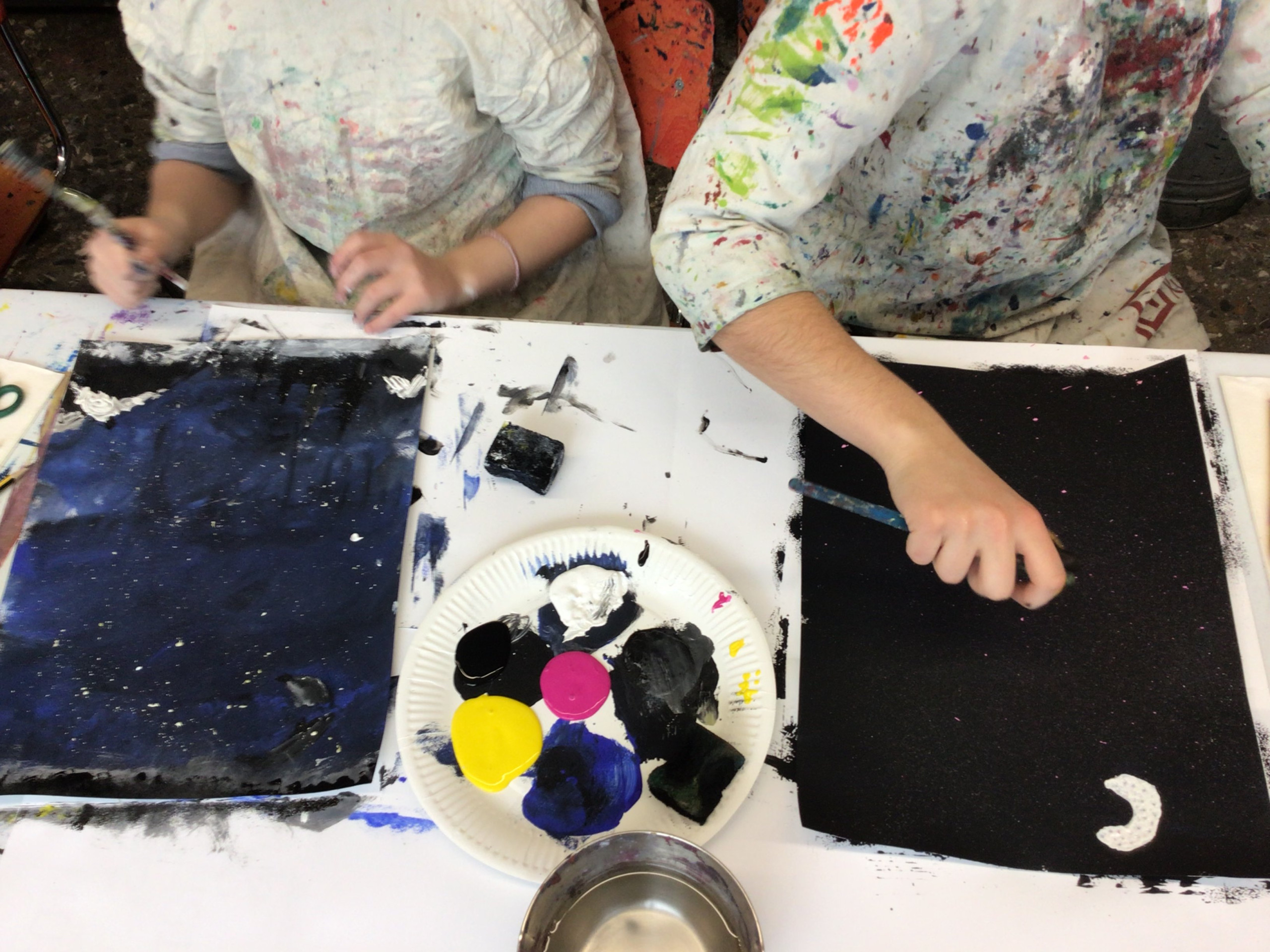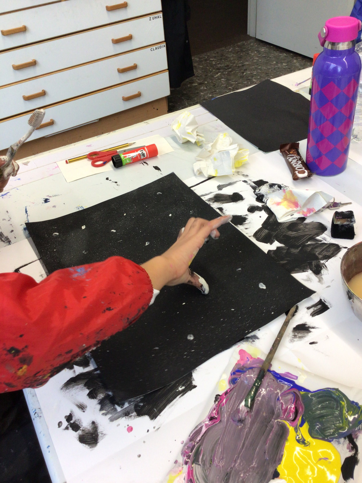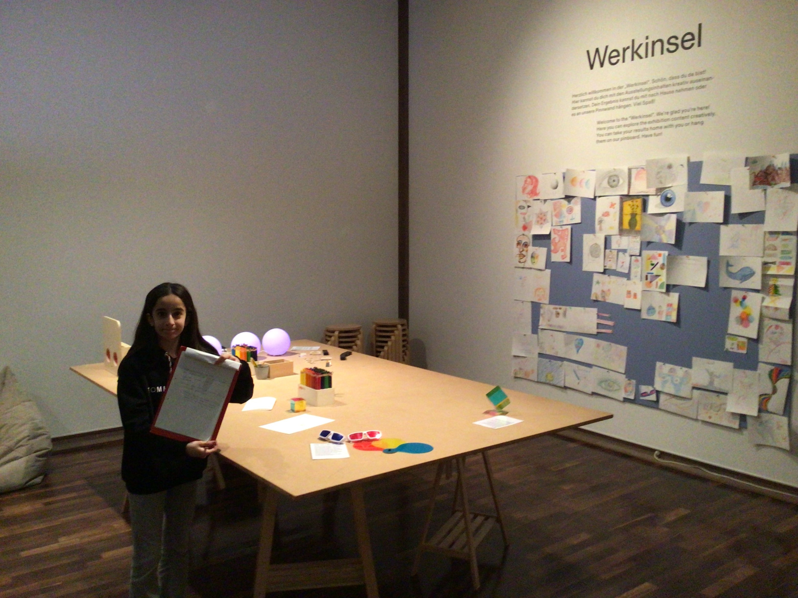 Begonnen hat der Besuch mit einer ausgiebigen Führung durch die Räumlichkeiten der Kunsthalle, bei der wir auch hinter die Kulissen schauen konnten und viele Einblicke bekamen. Besonders interessant war der Gang durch die aktuelle Ausstellung, die unter dem Motto „Alles Licht. Light and Space gestern und heute“ steht. Es gab viele interessante Kunstwerke zu entdecken, die in unterschiedlicher Art Licht darstellen. Bei manchen Kunstwerke, die sogar mit Musik untermalt wurden, haben wir auch einige Momente inne gehalten, um sie besser auf uns wirken zu lassen. Im zweiten Teil waren wir in einer Kunstwerkstatt und durften selber kreativ sein und ein Kunstwerk zu dem Thema „Sterne“ entstehen lassen.