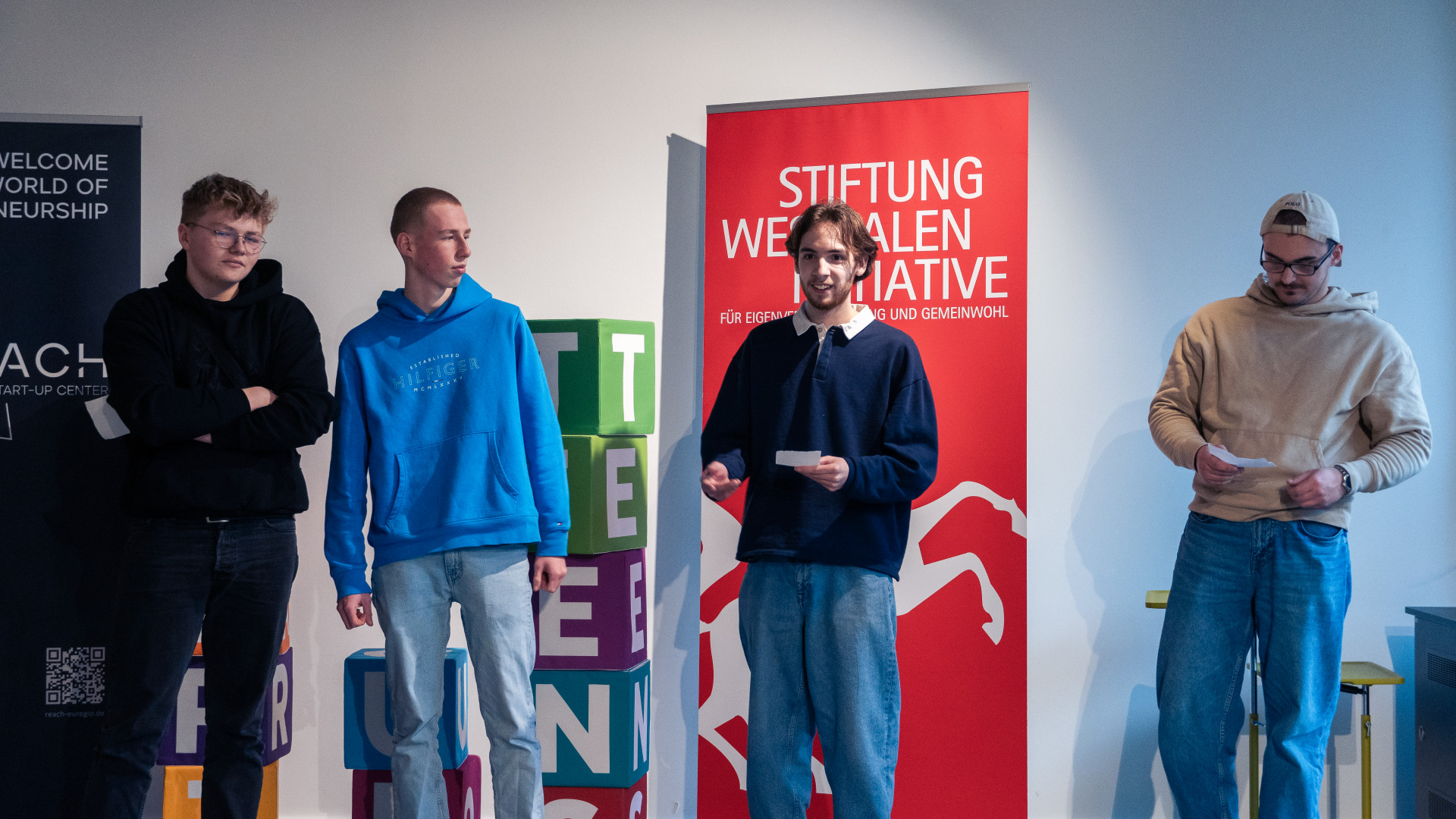 Die Schülerinnen und Schüler des Projektkurses „Start-up School“ nahmen im Februar am Ideenworkshop des Wettbewerbs Startup-Teens in Münster teil. Begleitet wurden sie von einigen interessierten Schülerinnen und Schülern der Qualifikationsphase II, die den Kurs im Vorjahr besucht hatten. In dem Ideenworkshop, den das Team von Startup Teens gemeinsam mit dem REACH Euregio Start-up Center der Universität Münster sowie der Stiftung Westfalen-Initiative veranstaltete, ging es darum, innerhalb von zwei Stunden eine Geschäftsidee zu entwickeln und diese möglichst weit auszuarbeiten. Ein sehr ambitioniertes Programm, bei dem gerade der Zeitdruck dazu führt, dass besonders kreative und produktive Ideen entstehen können, aus denen die Schülerinnen und Schüler nun Beiträge für ihre Teilnahme an dem Wettbewerb Startup-Teens erstellen können. Belgeitet und beraten wurden die Schülerinnen und Schülern auf diesem zeitlich sehr begrenzten, aber sehr intensiven Weg vom erfahrenen Trainer- und Mentorenteam von Startup-Teens. Beeindruckend war hier, dass einige der Mentorinnen und Mentoren selbst den Wettbewerb absolviert hatten und ausgehend von den entwickelten Ideen mittlerweile Start-ups gegründet haben, die sich mit Erfolg am Markt etablieren konnten – authentische Vorbilder also für mögliche Gründerinnen und Gründer aus unserer Schule. Nicht wenige Schülerinnen und Schüler nutzten den Anlass gleich dazu, ihre Ideen, die sie ohnehin schon im Rahmen des Projektkurses, der nun im zweiten Jahr als Pilotprojekt zusammen mit dem Landeskompetenzzentrum für individuelle Förderung und dem REACH Start-up Center der Universität Münster an unserer Schule angeboten wird, weiterzuentwickeln bzw. um neue Ideen zu ergänzen. Doch auch die ehemaligen Schülerinnen und Schüler des Projektkurses konnten bei dem Workshop auf ihren Erfahrungen mit den Innovationsmethoden der Start-up-Kultur aufbauen und entwickelten selbst noch einmal neue Ideen, die ebenfalls wettbewerbstauglich ausgebaut werden könnten.
