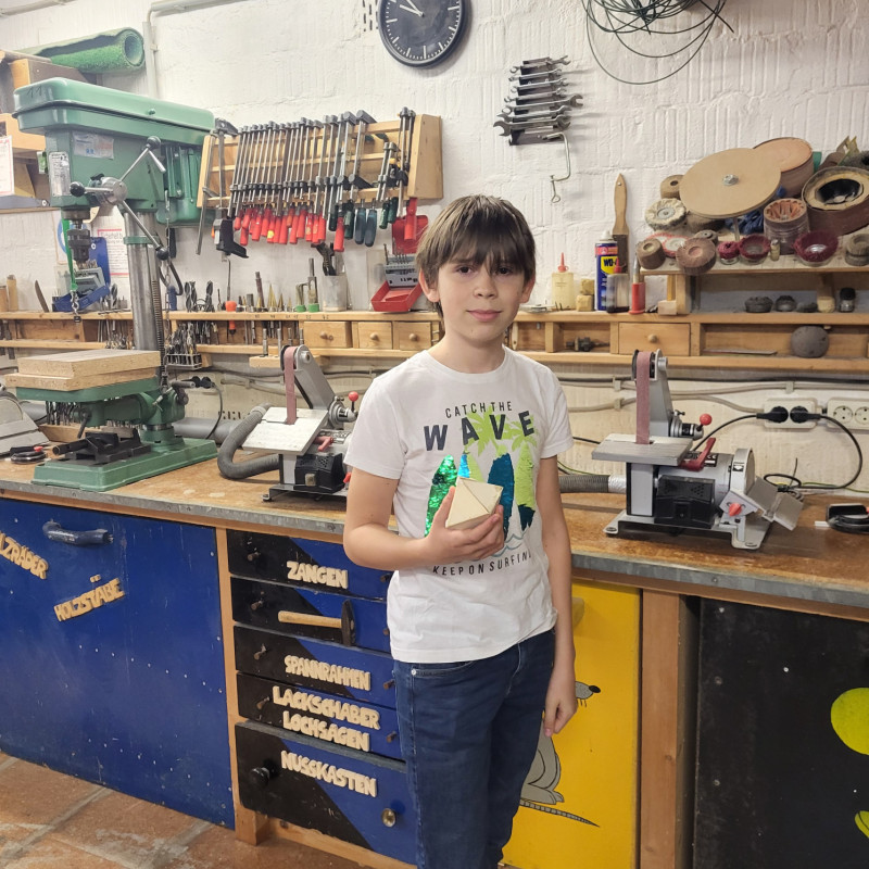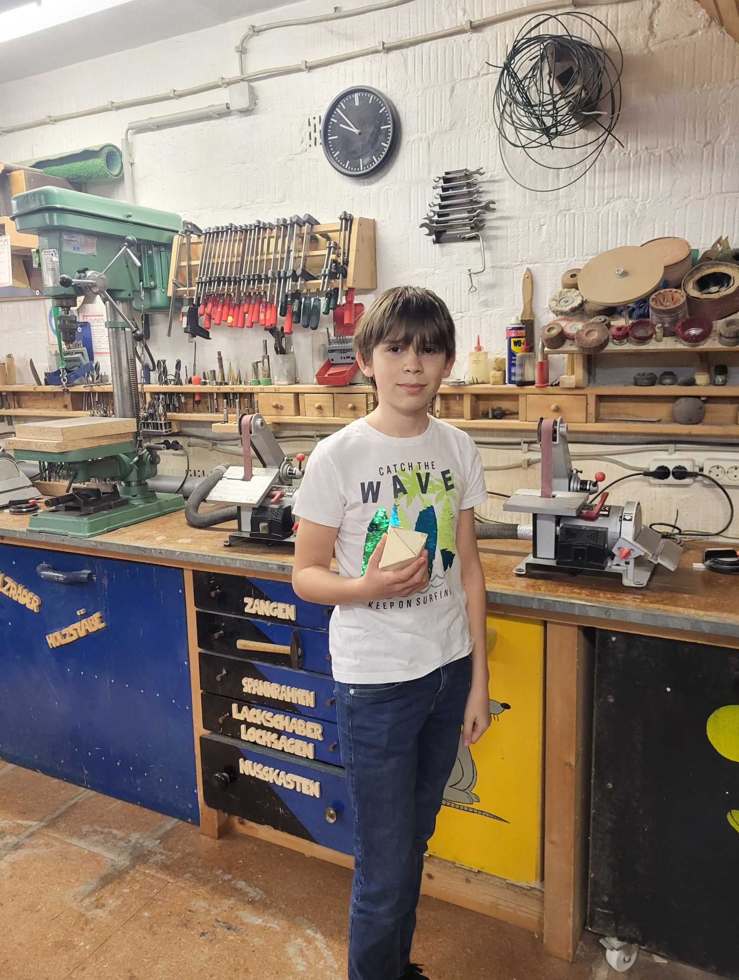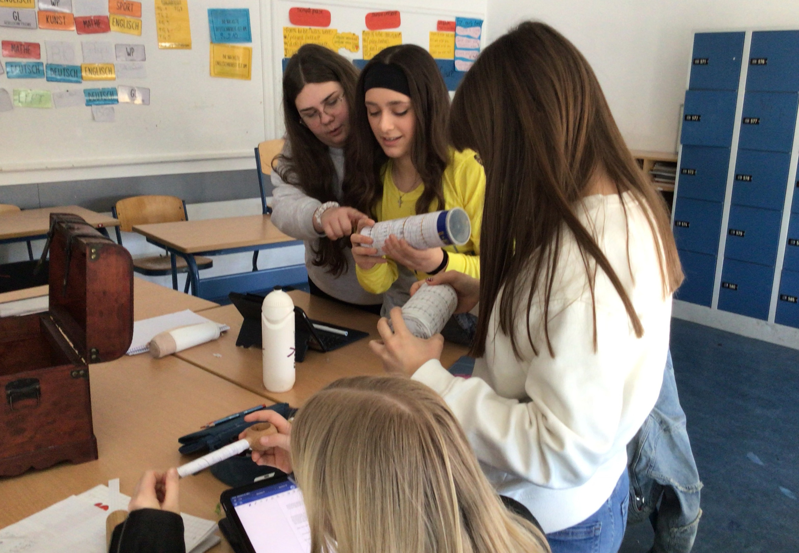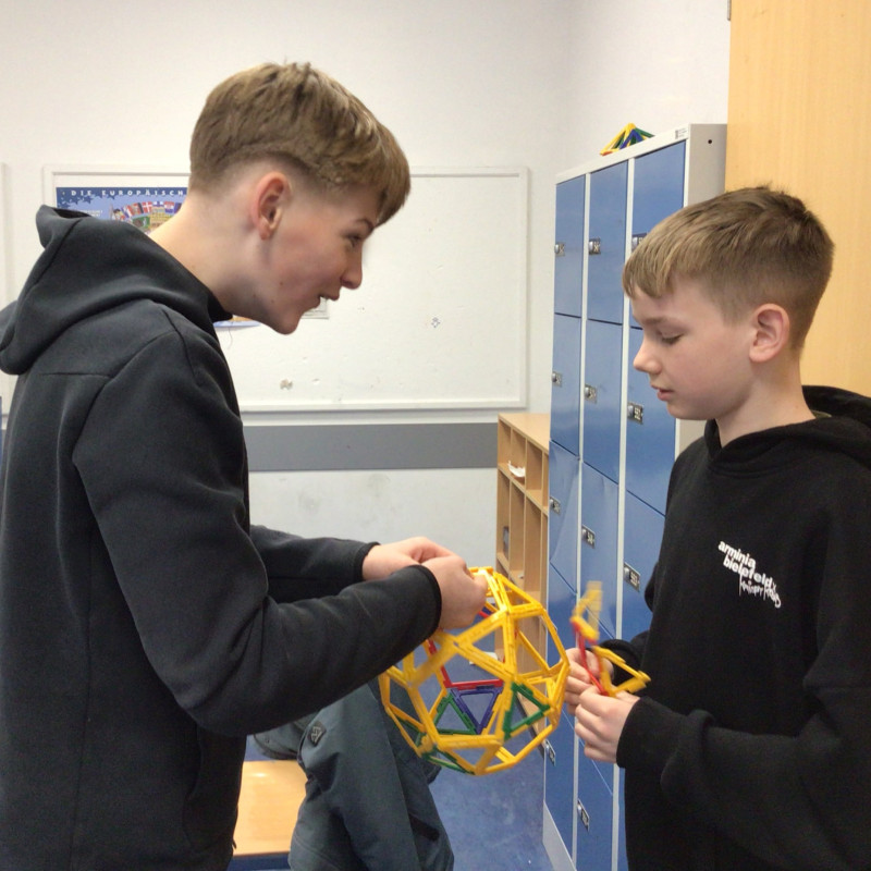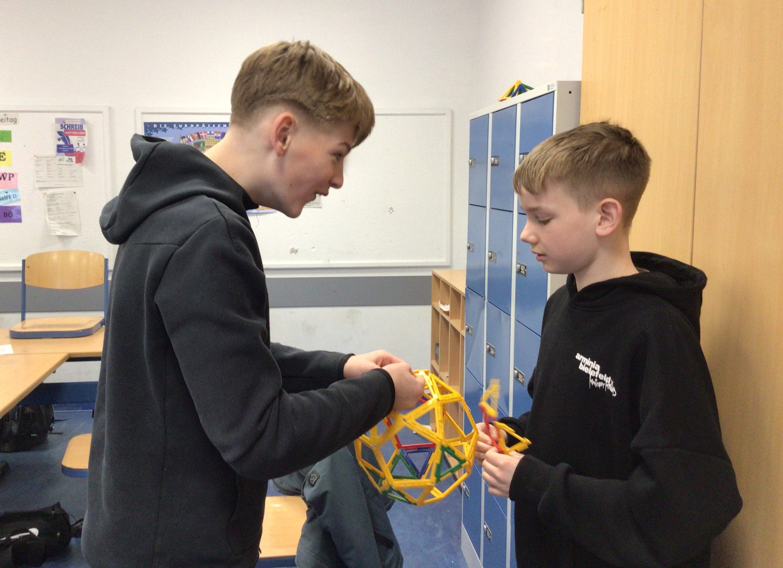 Madlen Janowski (6c) hatte sich für die "Kryptologie" entschieden und beschäftigte sich mit der Verschlüsselung von geheimen Botschaften. Max Wiedemann (6c) hatte die Projektgruppe "Archimedische Körper" gewählt und baute unter anderem in der Holzwerkstatt seinen eigenen Oktaeder.