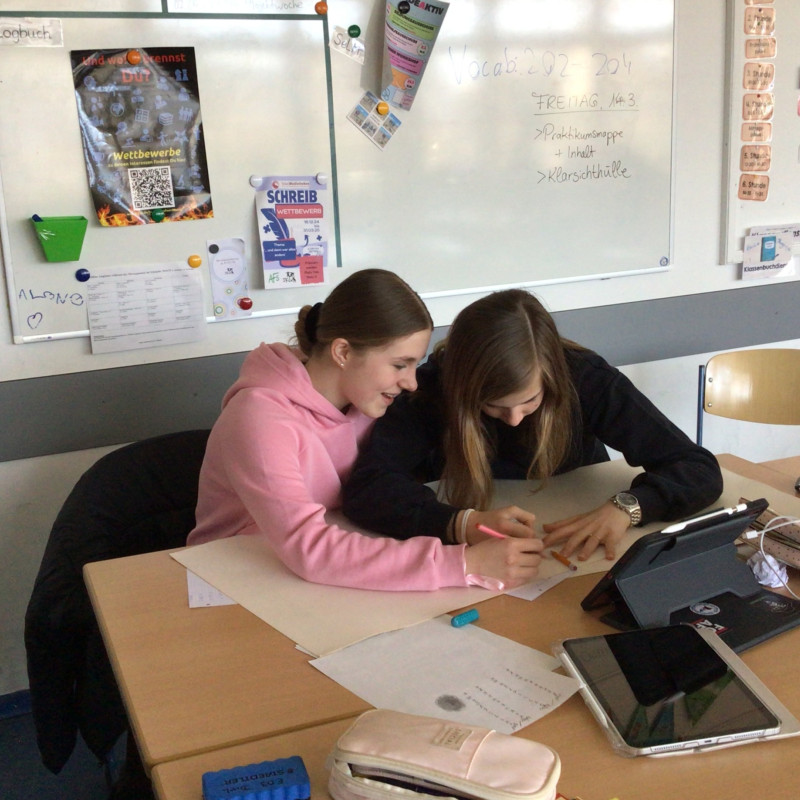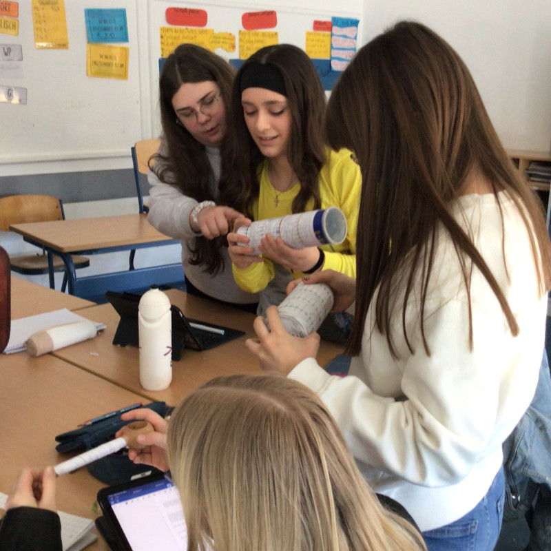 Schon zum vierten Mal fand vor den Osterferien drei Tage lang unsere Schülerakademie Mathematik für den Jahrgang 7 statt. Mit einer großen Teilnehmerzahl von 22 Schülerinnen und Schülern wurde intensiv in den drei Projektgruppen "Kryptologie" (Herr Schneider), "Platonische Körper" (Herr Robaczewski) und "Faire und unfaire Spiele" (Frau Bracke) gerätselt, gebastelt, ausprobiert und natürlich auch logisch gedacht.