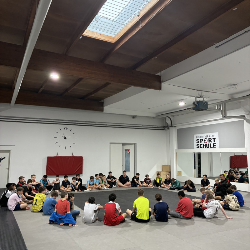 Parallel dazu absolvierten die Jungen ein Training in Kooperation mit der Bielefelder Kampfsportschule. Im Fokus standen Selbstbehauptung, Körpersprache und Deeskalationsstrategien. Zwar war auch das Kräftemessen ein Ziel, aber vor allem ging es darum, Situationen bewusst wahrzunehmen und angemessen einzuschätzen, um selbstbewusst und respektvoll handeln zu können. Der Trainer zeigte den Teilnehmern, wie sich die innere Haltung äußerlich ausdrückt, beispielsweise durch Blickkontakt, Körperausrichtung und Stimme. Mithilfe praktischer Übungen lernten die Teilnehmer, in kritischen Momenten ruhig zu bleiben, Grenzen zu setzen und zu akzeptieren, im Team verbunden zu bleiben sowie Verantwortung für sich und andere zu übernehmen.