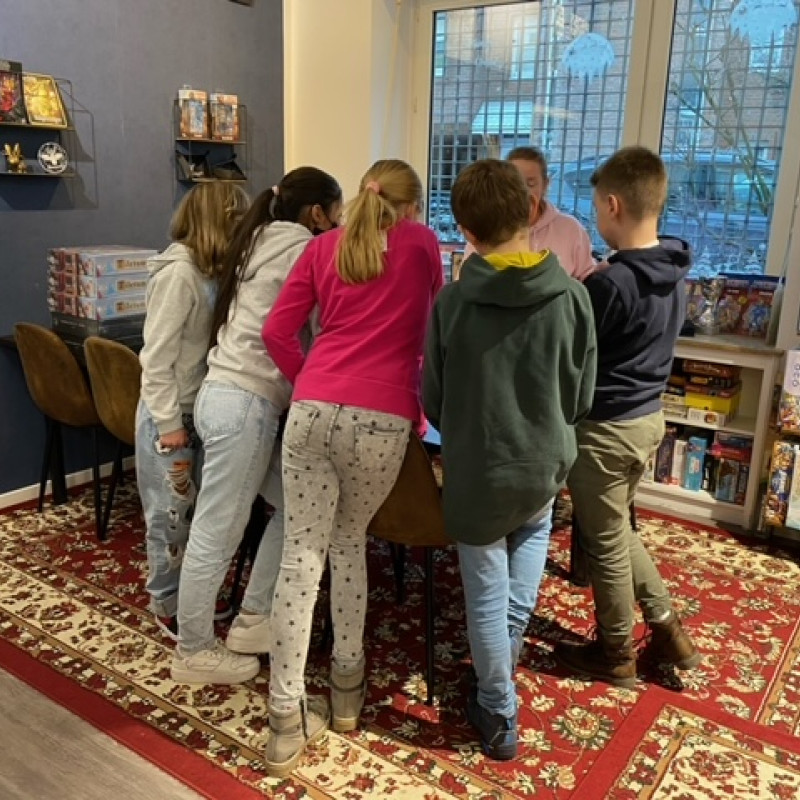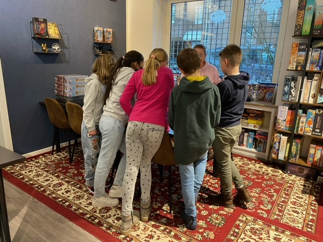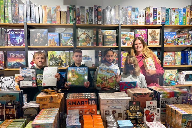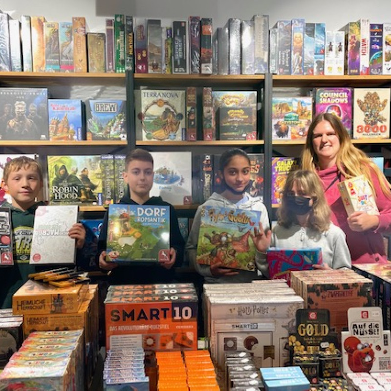 Die AG Gesellschaftsspiele unter der Leitung von Nadine Wagenbach stattete dem Spielegeschäft Wolpertinger einen Besuch ab. Den Schülerinnen und Schülern wurden einige Spiele vorgestellt, die sie für die AG und für die Nutzung im Spielraum aussuchen konnten. Dies wurde durch die Unterstützung des bekannten Vereins "Spiel des Jahres e. V." möglich. Dabei musste ein umfangreicher Antrag auf Förderung gestellt werden. Dieser wurde nun positiv beschieden und eine stattlicher Betrag wurde dem Förderverein überwiesen.